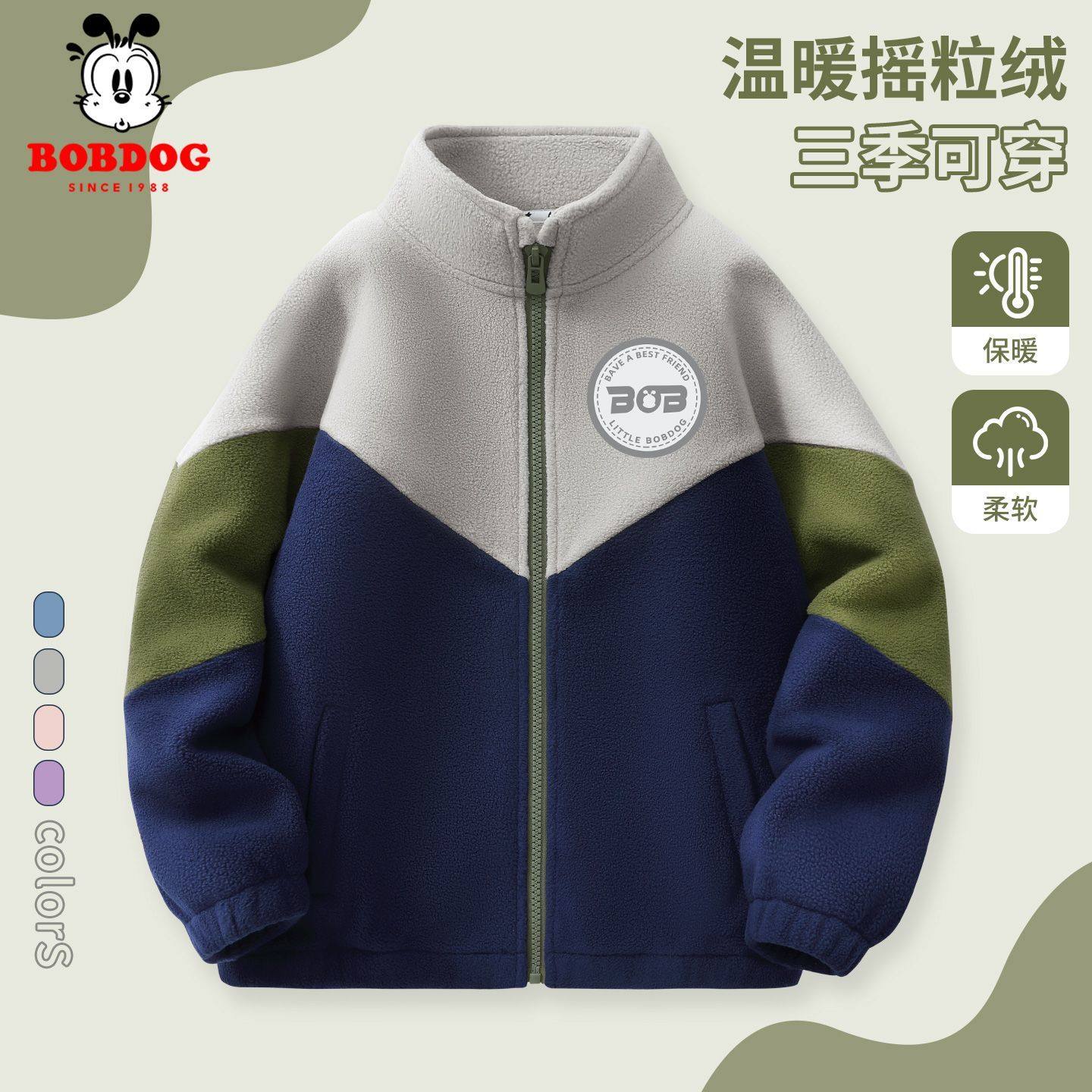 巴布豆男童摇粒绒外套秋冬款2025新款加厚夹克衫儿童抓绒衣加绒