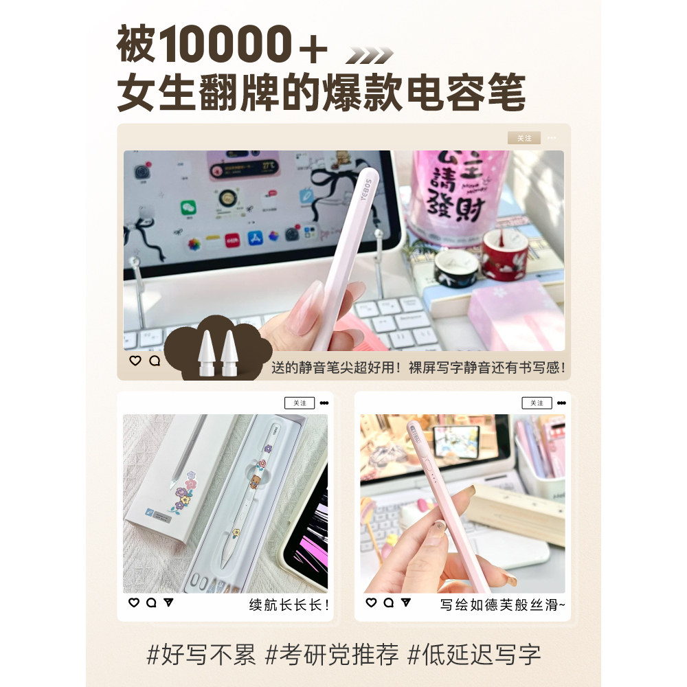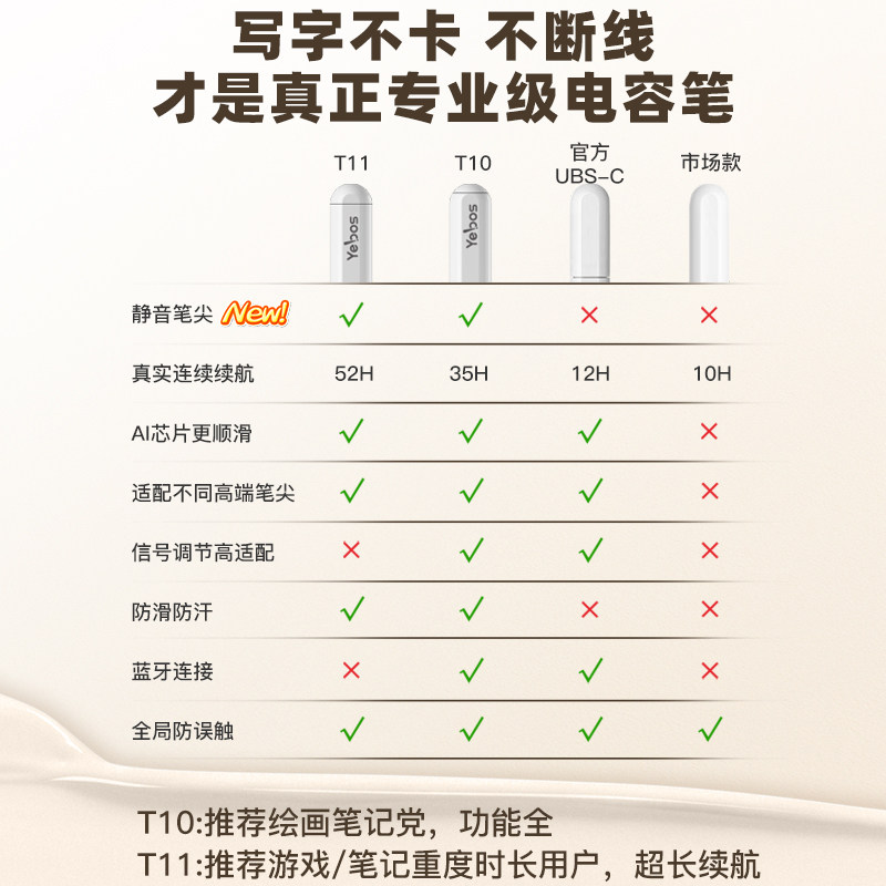【国补15%】益博思T10/11降噪长续航ipad电容笔适用苹果iPad11平板Air8/7触屏pencil触控笔pro平替磁吸手写笔
