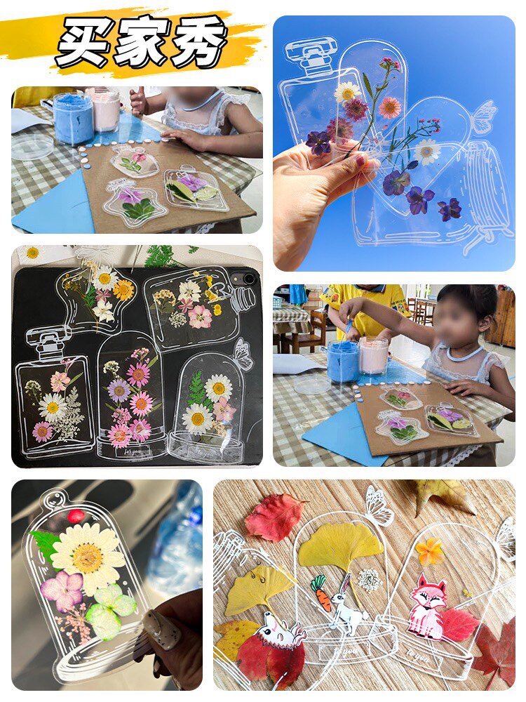 压花透明书签干花粘贴手工材料包制作植物标本幼儿园儿童春游创意
