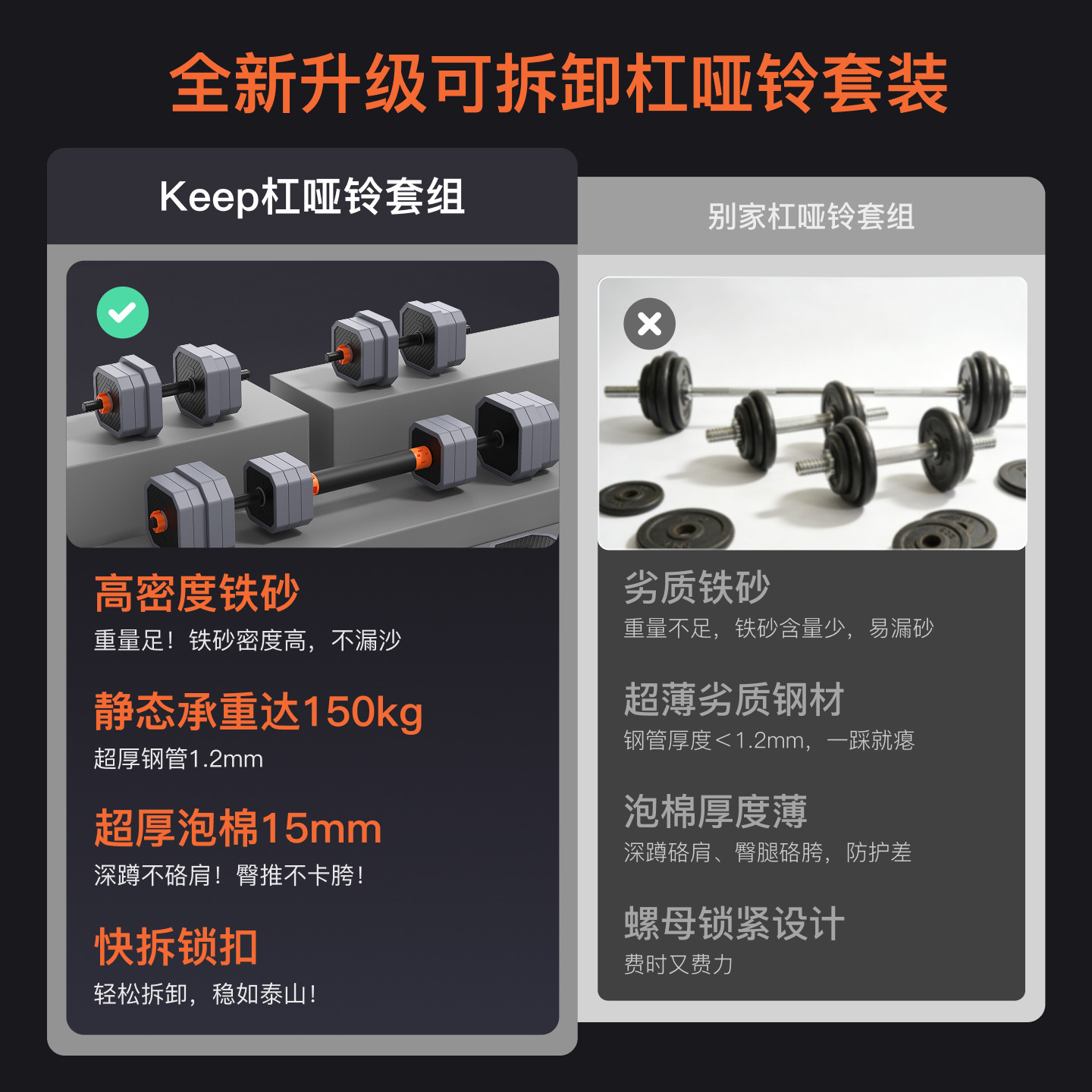 【新品】Keep哑铃杠铃健身家用锻炼器材可调节重量男杠铃运动套装