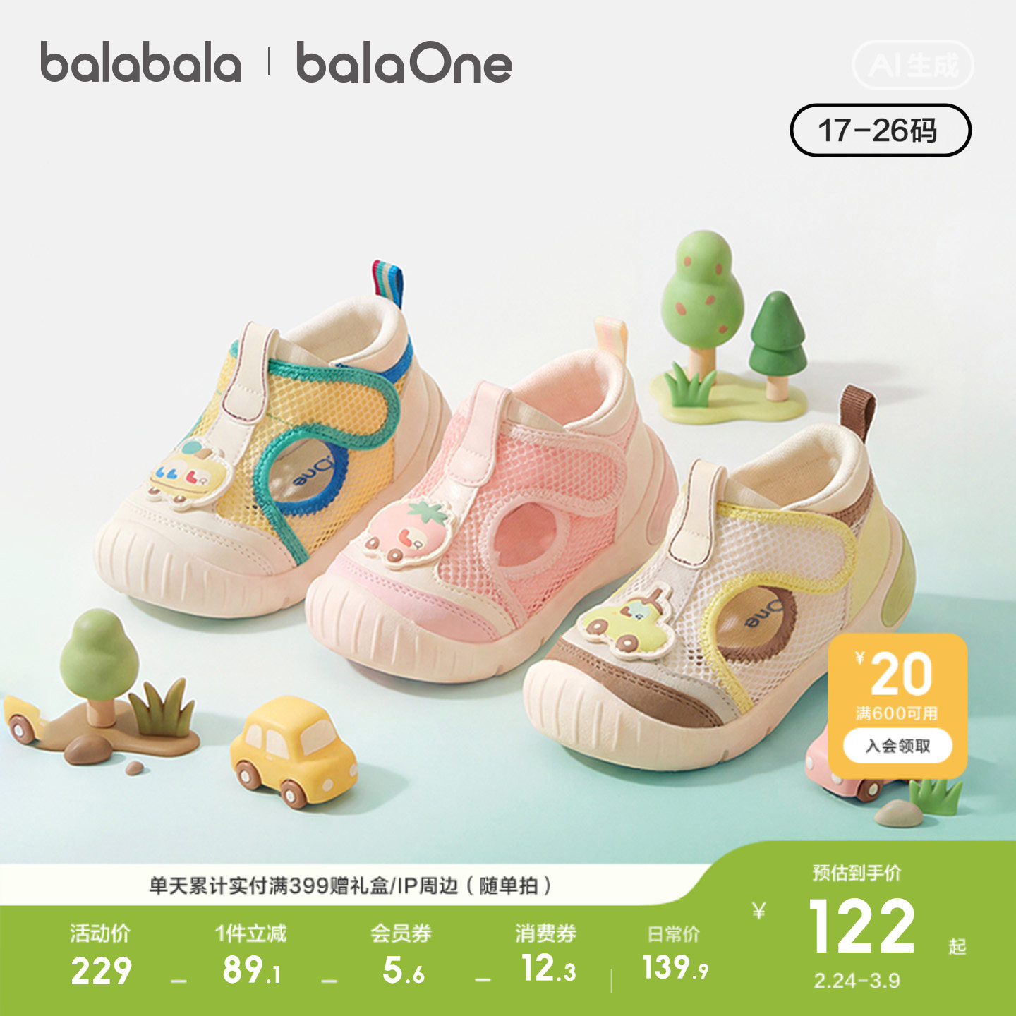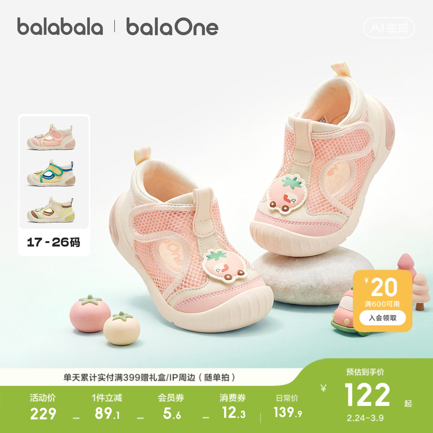 巴拉巴拉童鞋宝宝学步鞋儿童凉鞋婴儿2025夏季新款网布鞋子男女童