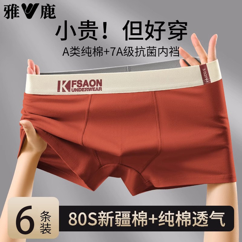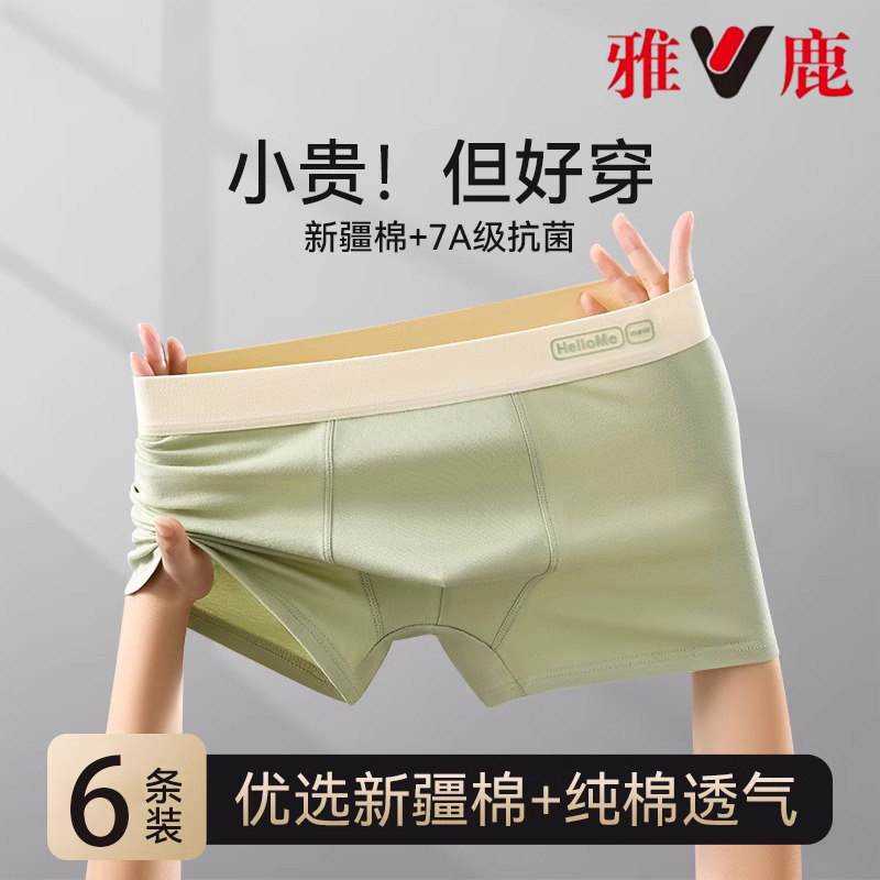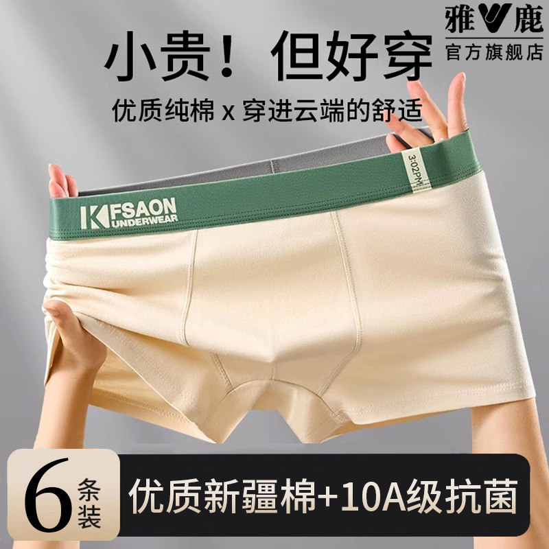 雅鹿男士内裤纯棉正品2026新款男正品全棉透气平短裤头衩男生中腰