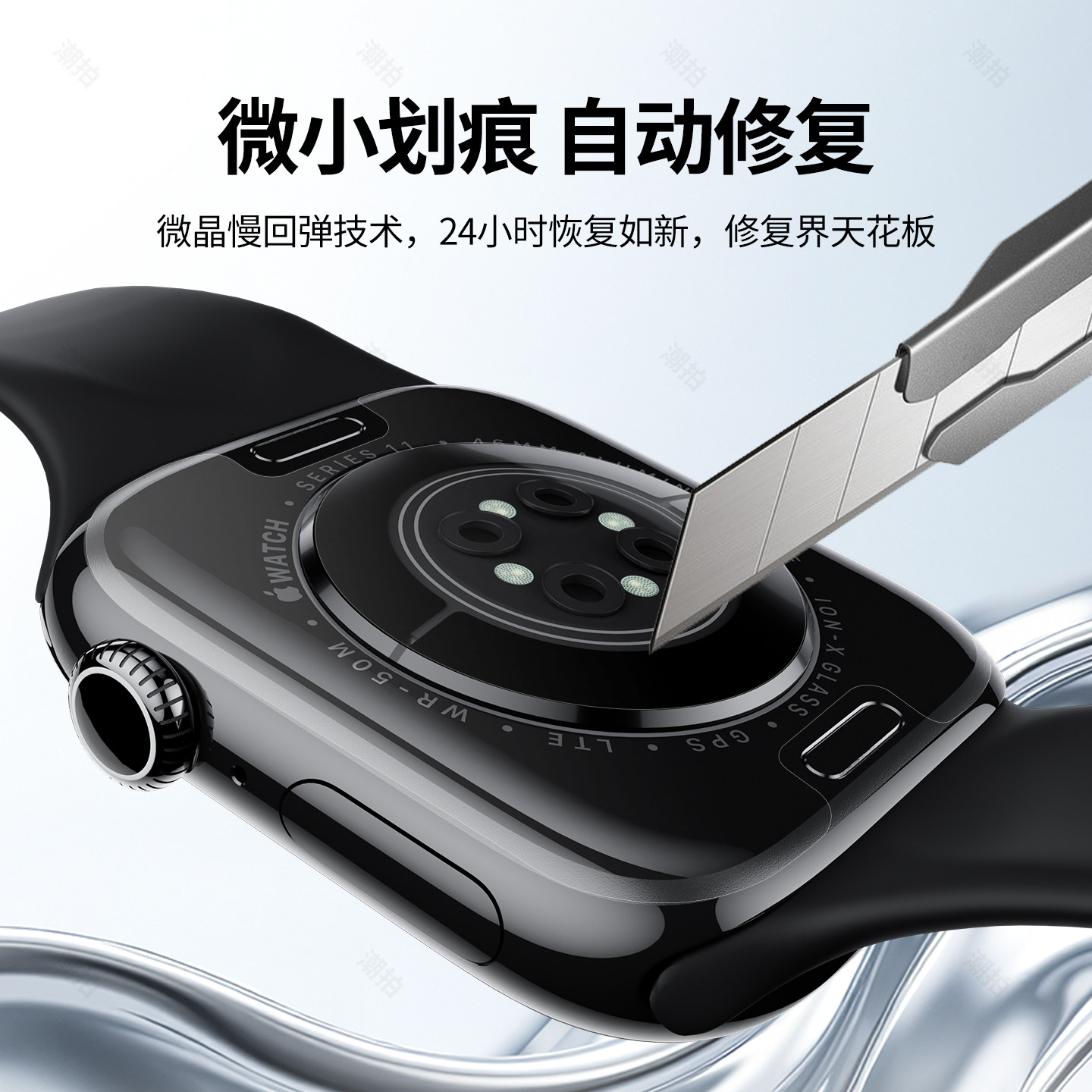 潮拍适用applewatchS10保护膜iwatch苹果手表水凝膜新款s11软膜传感器膜全覆盖S9屏幕贴膜se3/2背膜秒贴神器