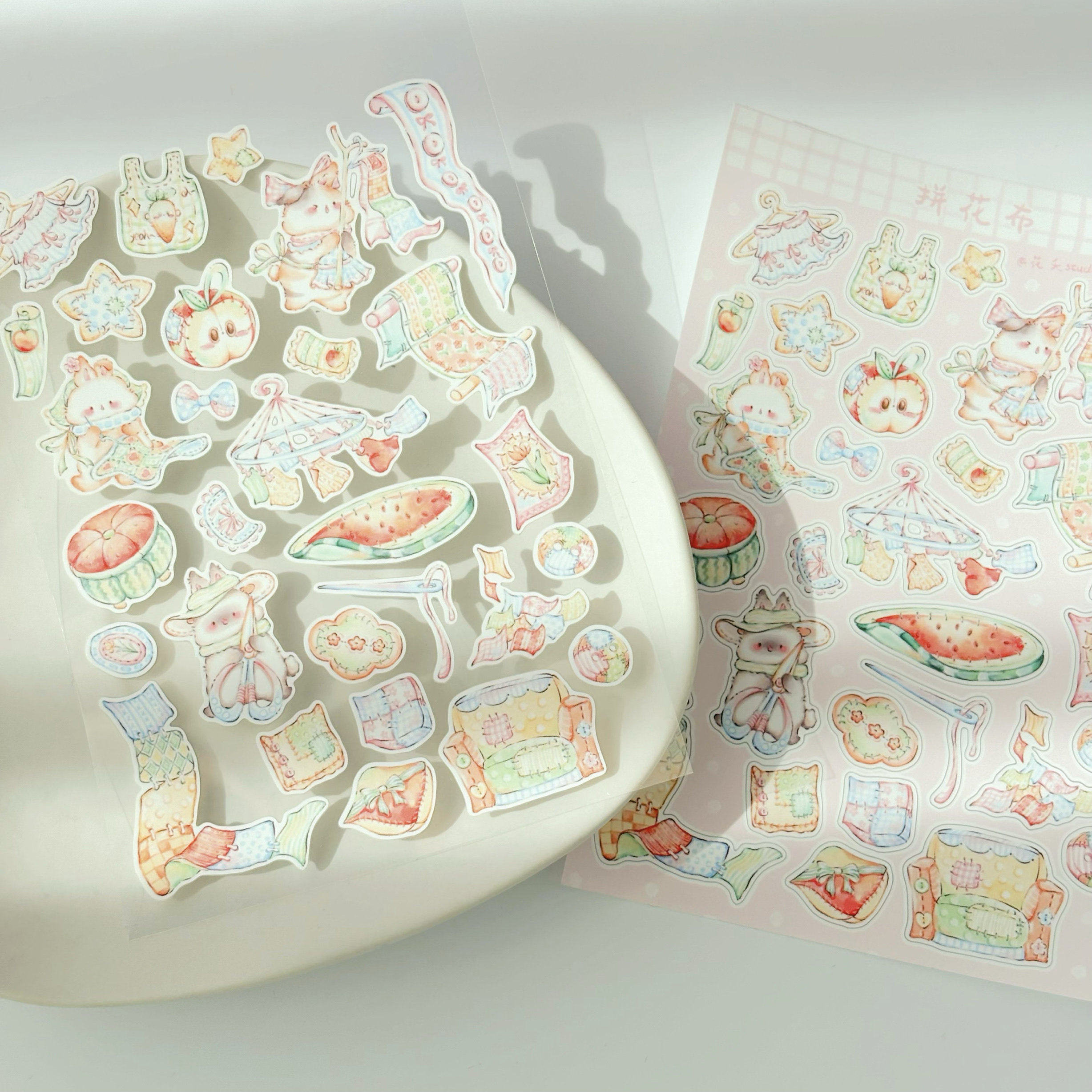 花夭studio 郁金香 冰淇淋 针绣 花布 兔子仓鼠原创手绘贴纸vol.3