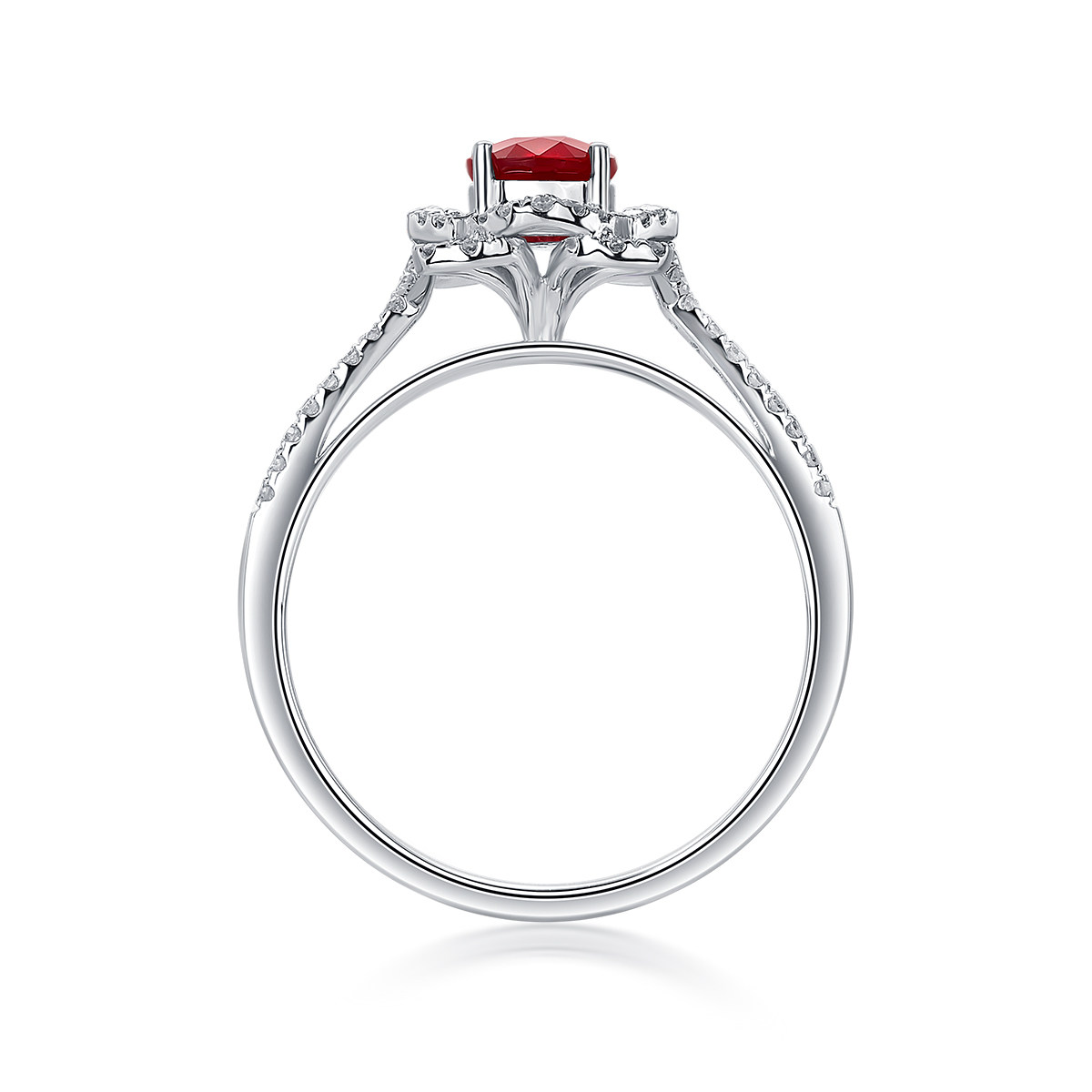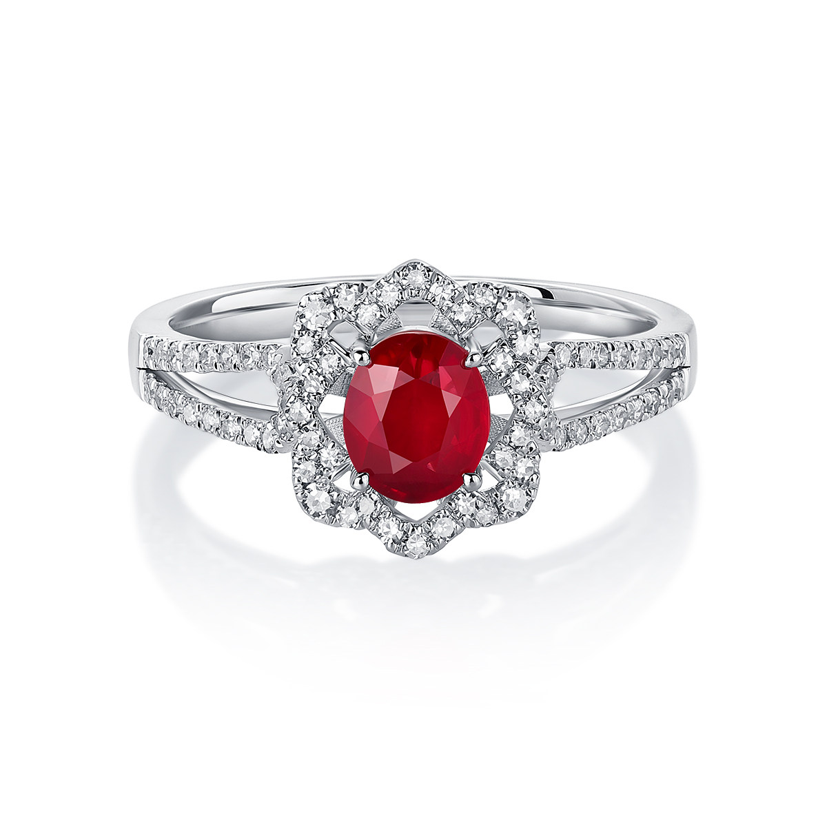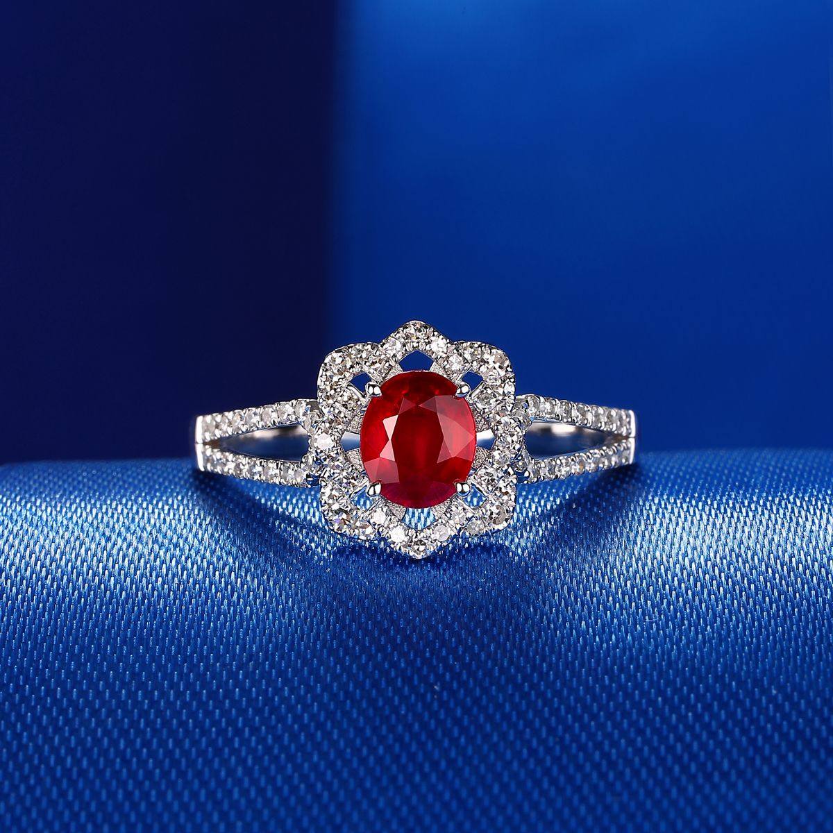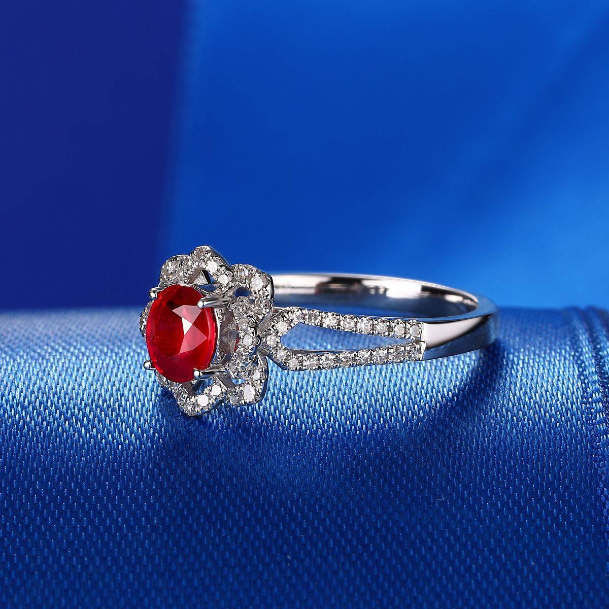 Yngel/蜜安琪18K白金镶天然鸽血红宝石戒指 玫瑰花瓣戒指求婚定制