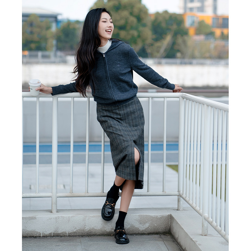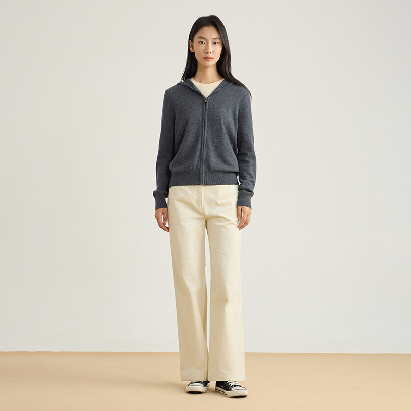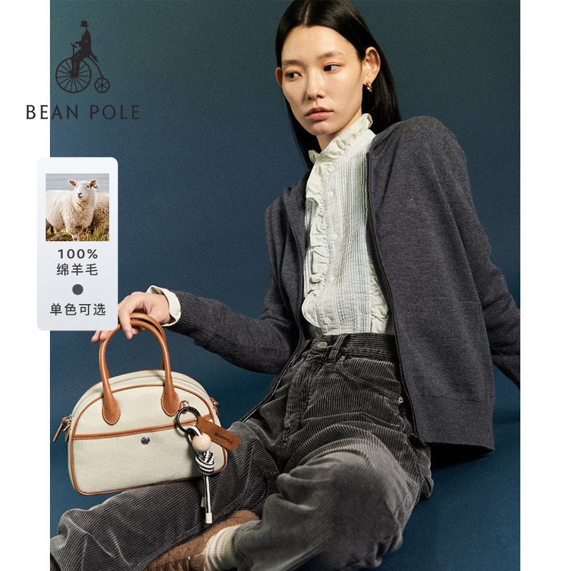 100%绵羊毛 BEANPOLE滨波女士简约时尚气质优雅连帽拉链针织开衫