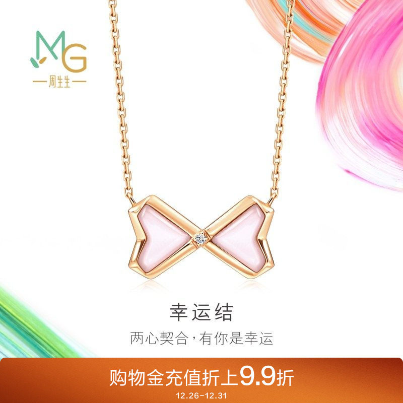周生生微糖系列幸运结贝母蝴蝶结18K玫瑰金项链93686N