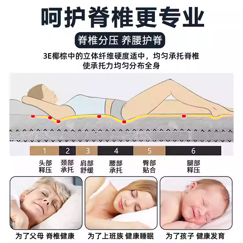 椰棕床垫棕垫棕榈硬垫子一体1.5米可定制1.8米护腰护脊柱儿童床垫