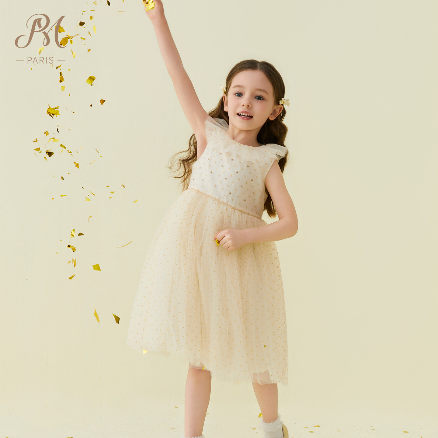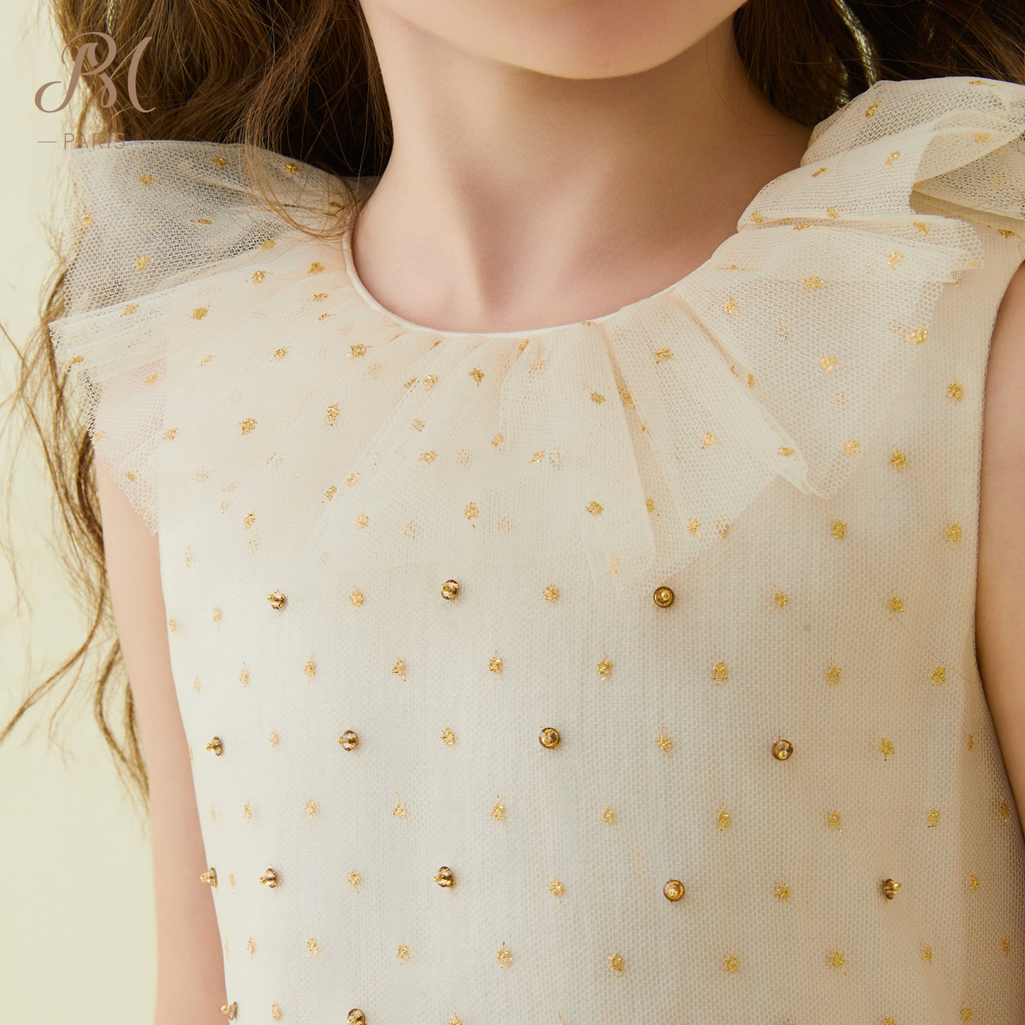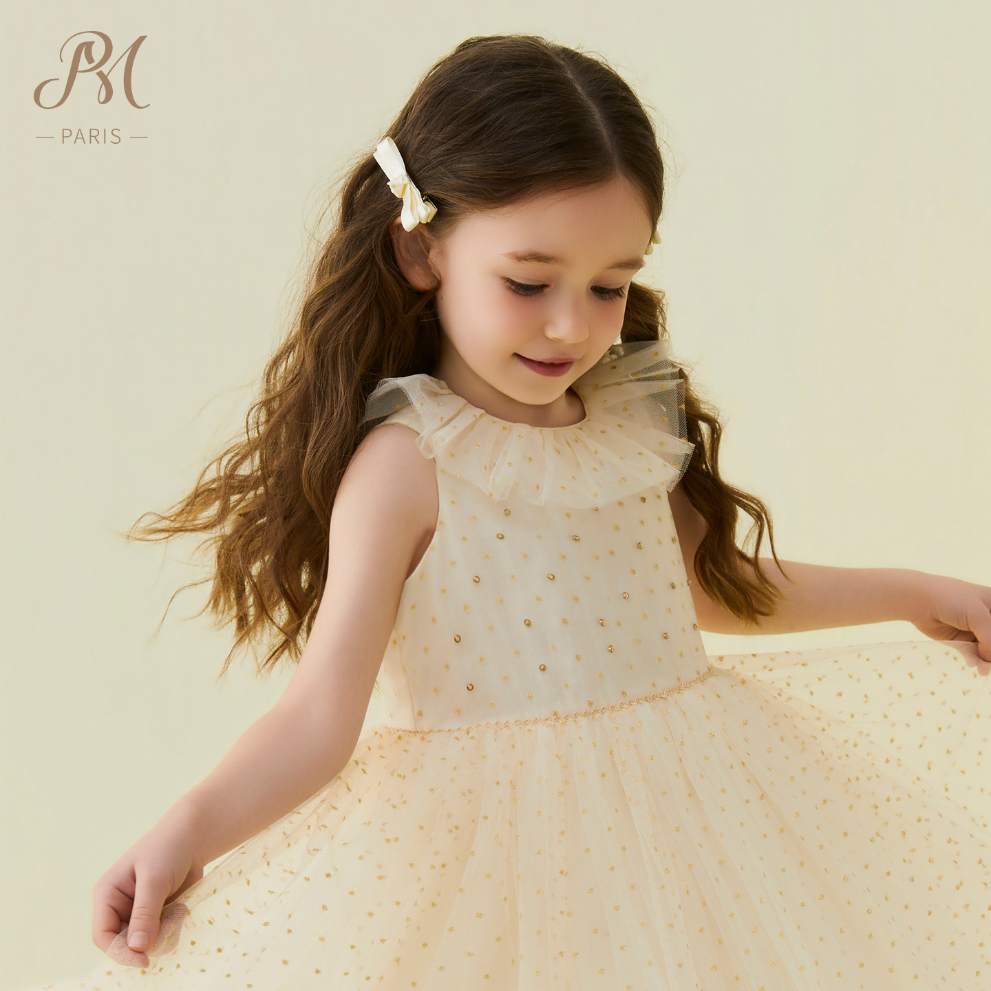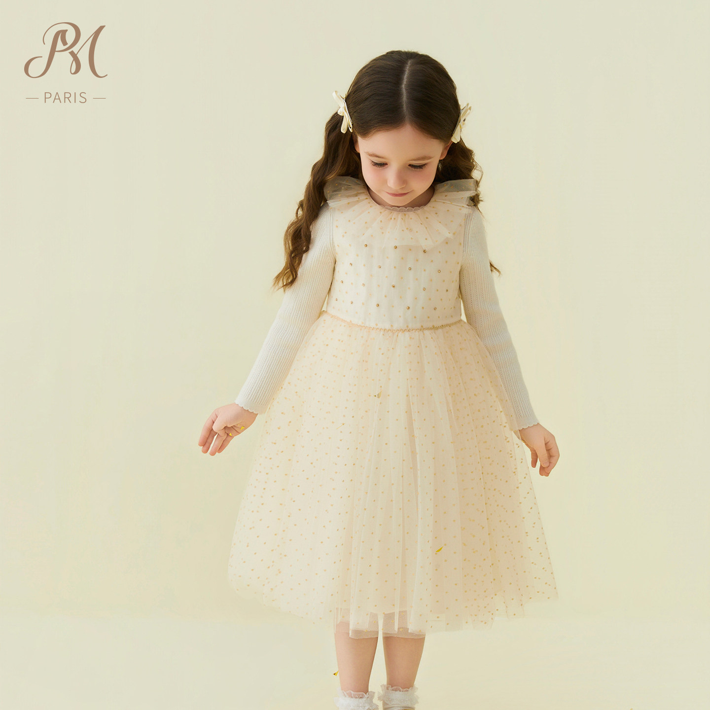 Petite Marguerite小雏菊童装·香槟荷叶边网纱背心裙针织衫套装