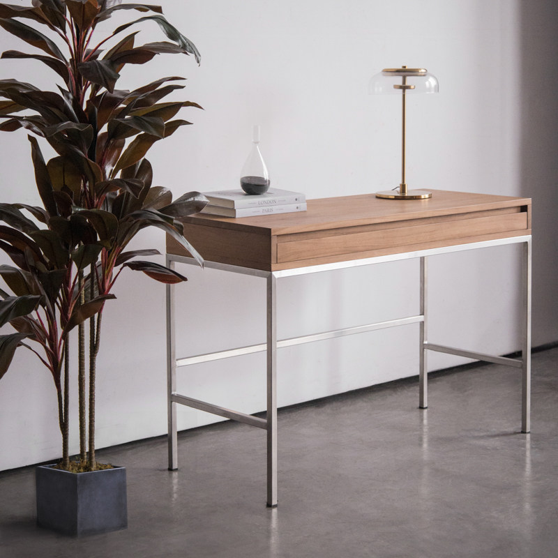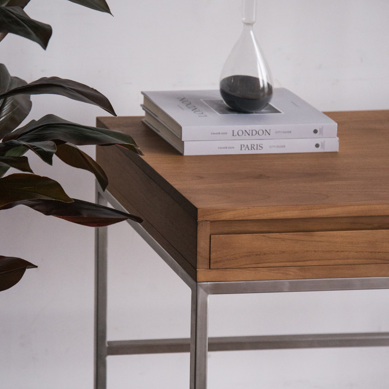 MountainLiving进口柚木家具实木书桌学生家用卧室飘窗带抽屉靠墙
