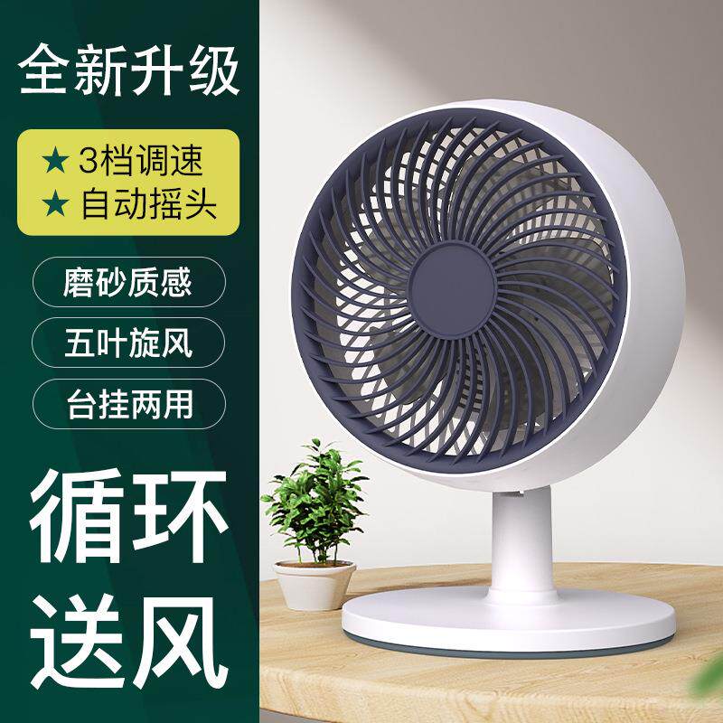 新款台式电风扇家用大风力静音台扇空气循环桌面小风扇摇头电扇无