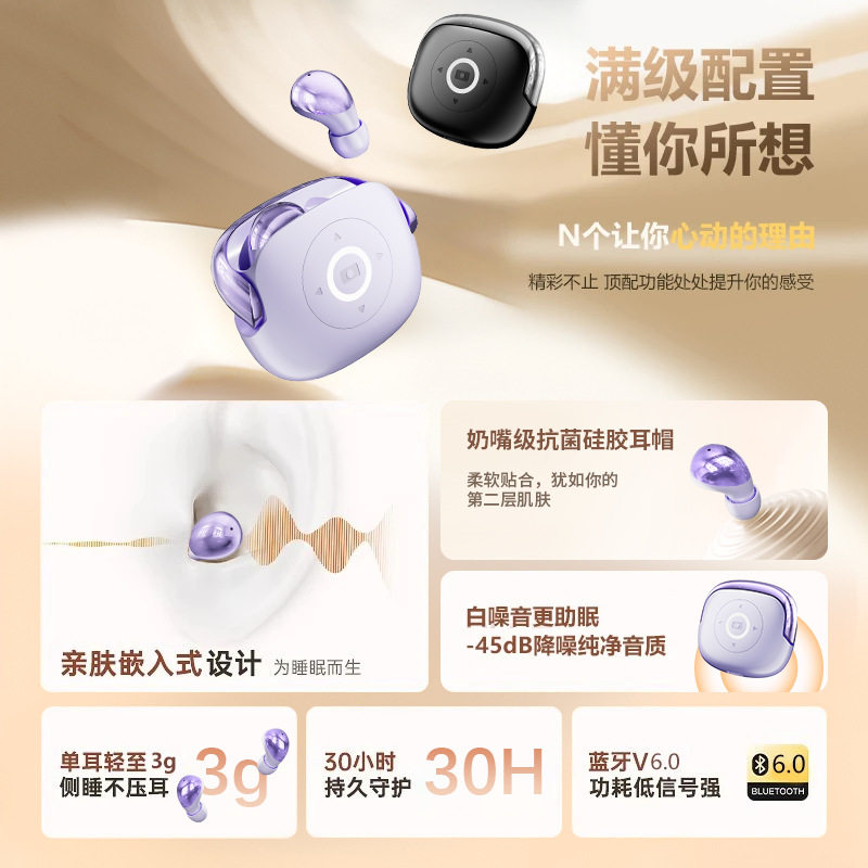 【智能遥控】2026新款睡眠豆蓝牙耳机不入耳高音质超长续航大电量