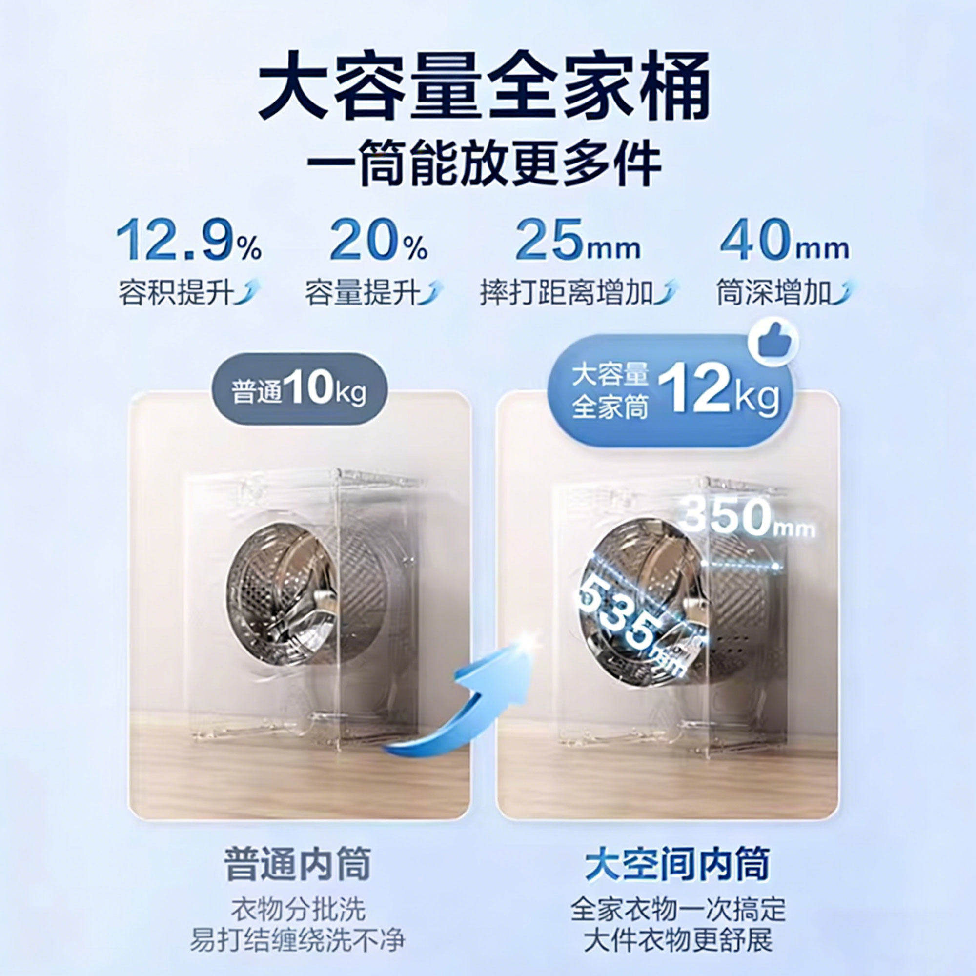 小天鹅水魔方滚筒洗衣机12公斤大容量洗烘干一体变频全自动家用