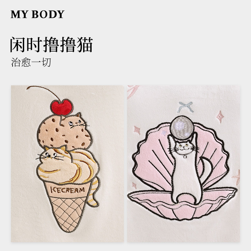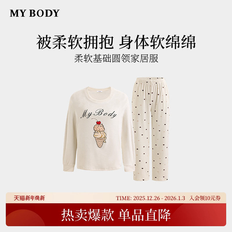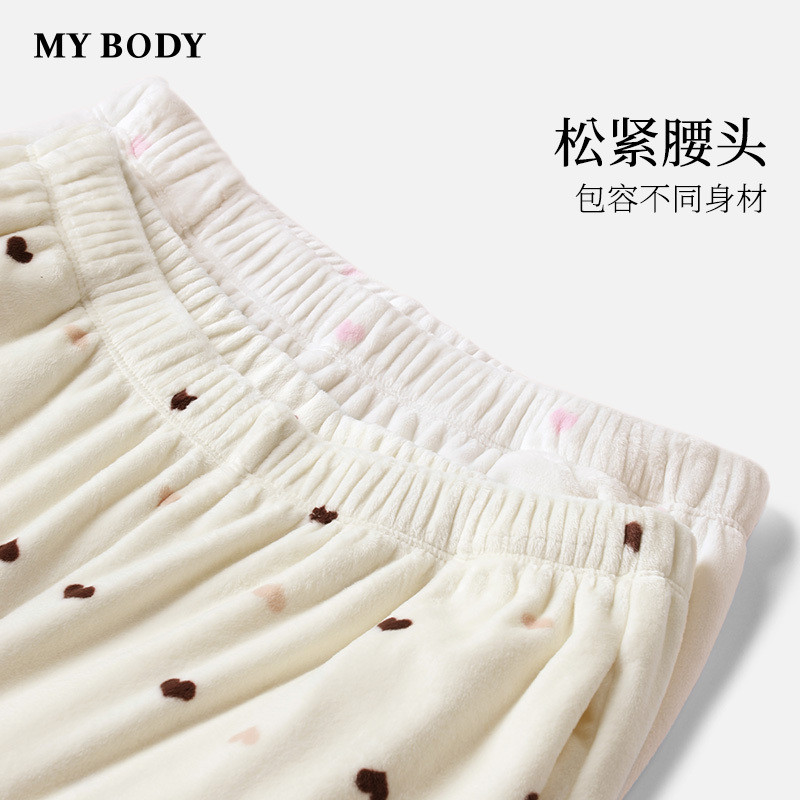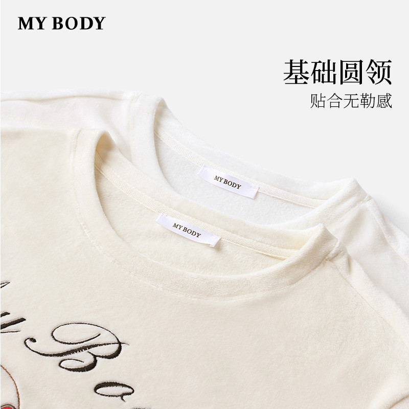 商场同款MYBODY冬季新款睡衣女印花柔软基础圆领海岛绒家居服套装