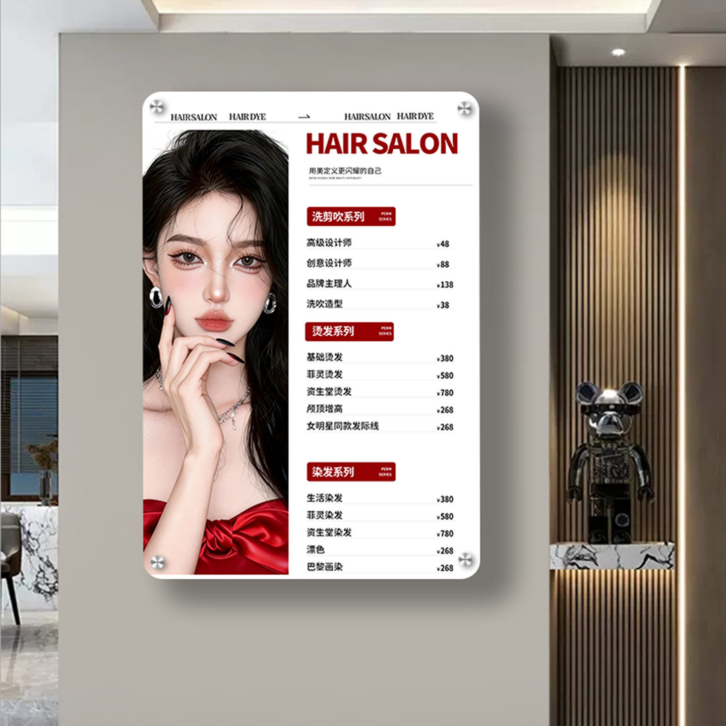 理发店定制价目表美业发廊美发店挂墙剪发烫染价格表设计制作美容院美甲美睫足疗养生亚克力广告牌价目表定制