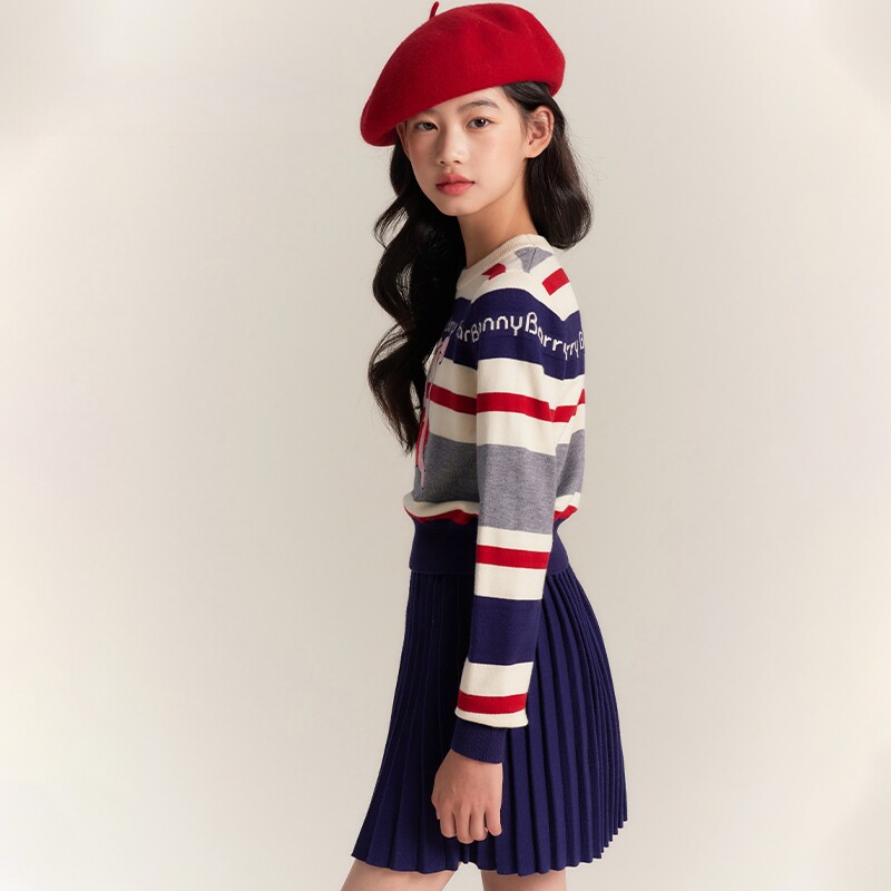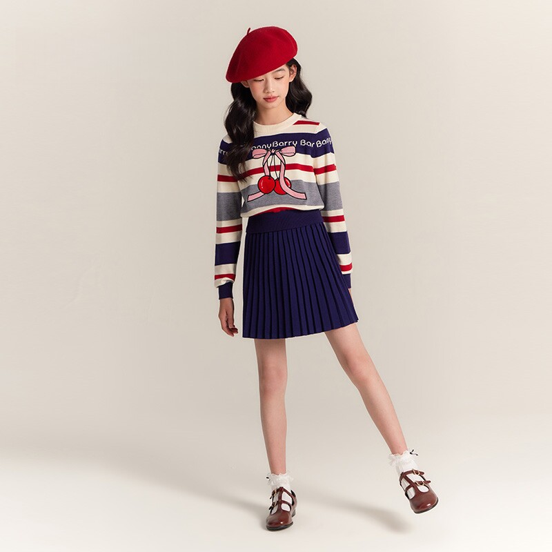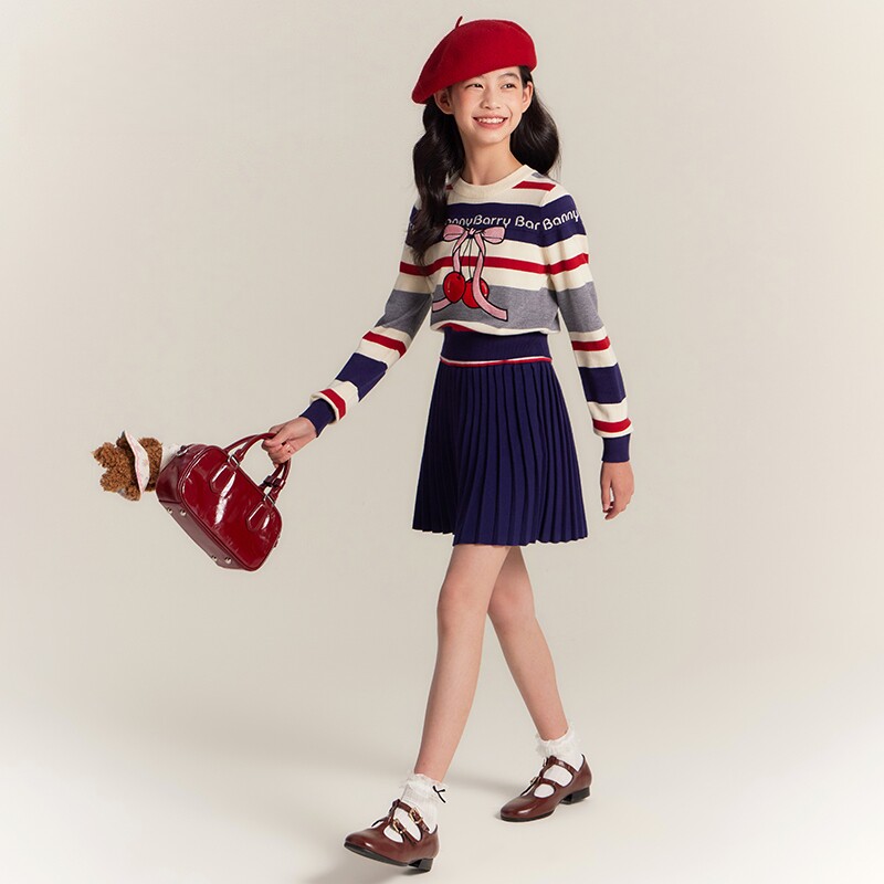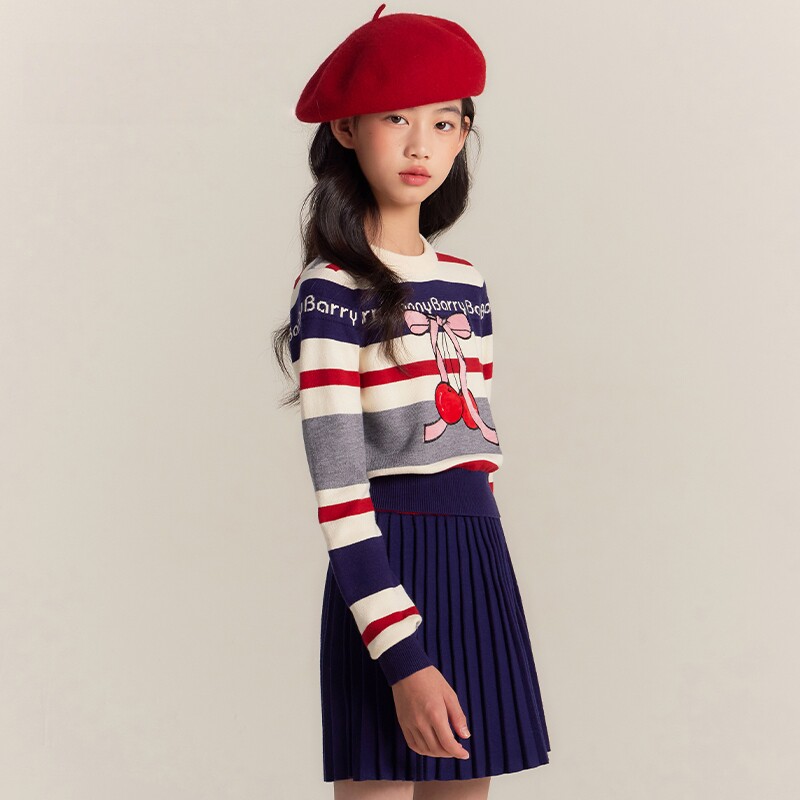 女童樱桃毛衣针织衫2025秋冬新款中大童宽松复古加厚打底衫上衣潮