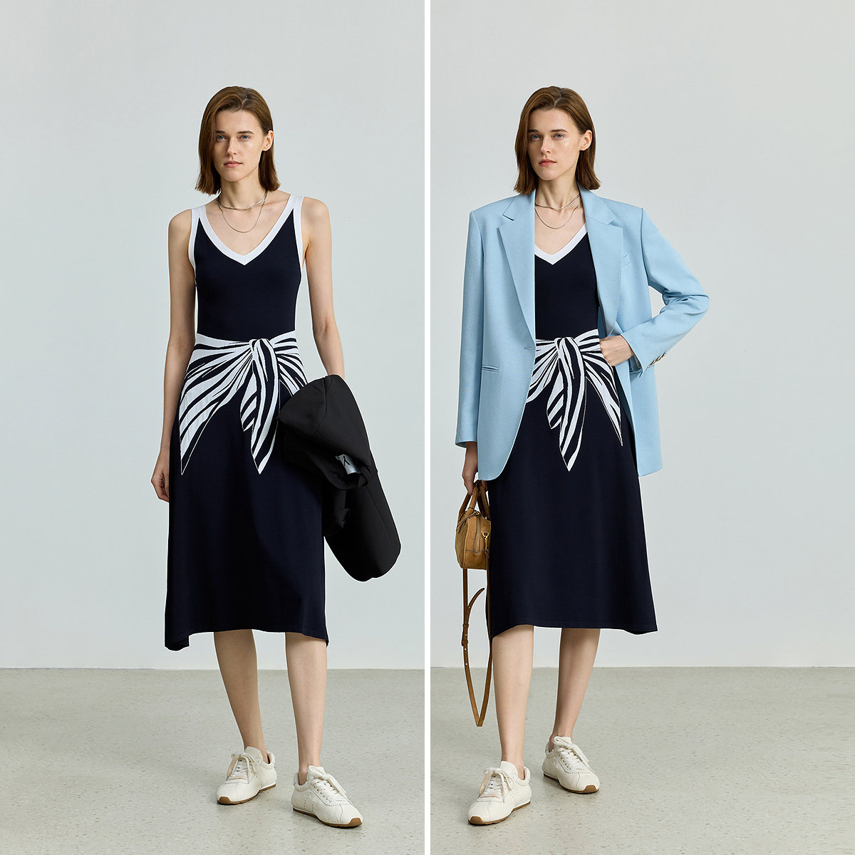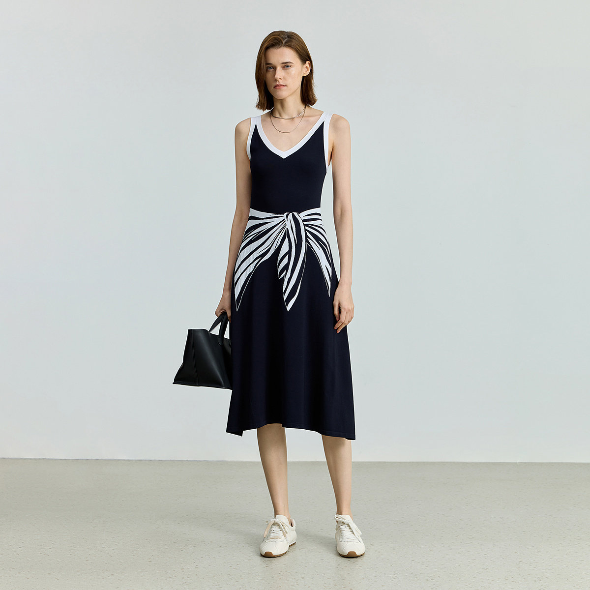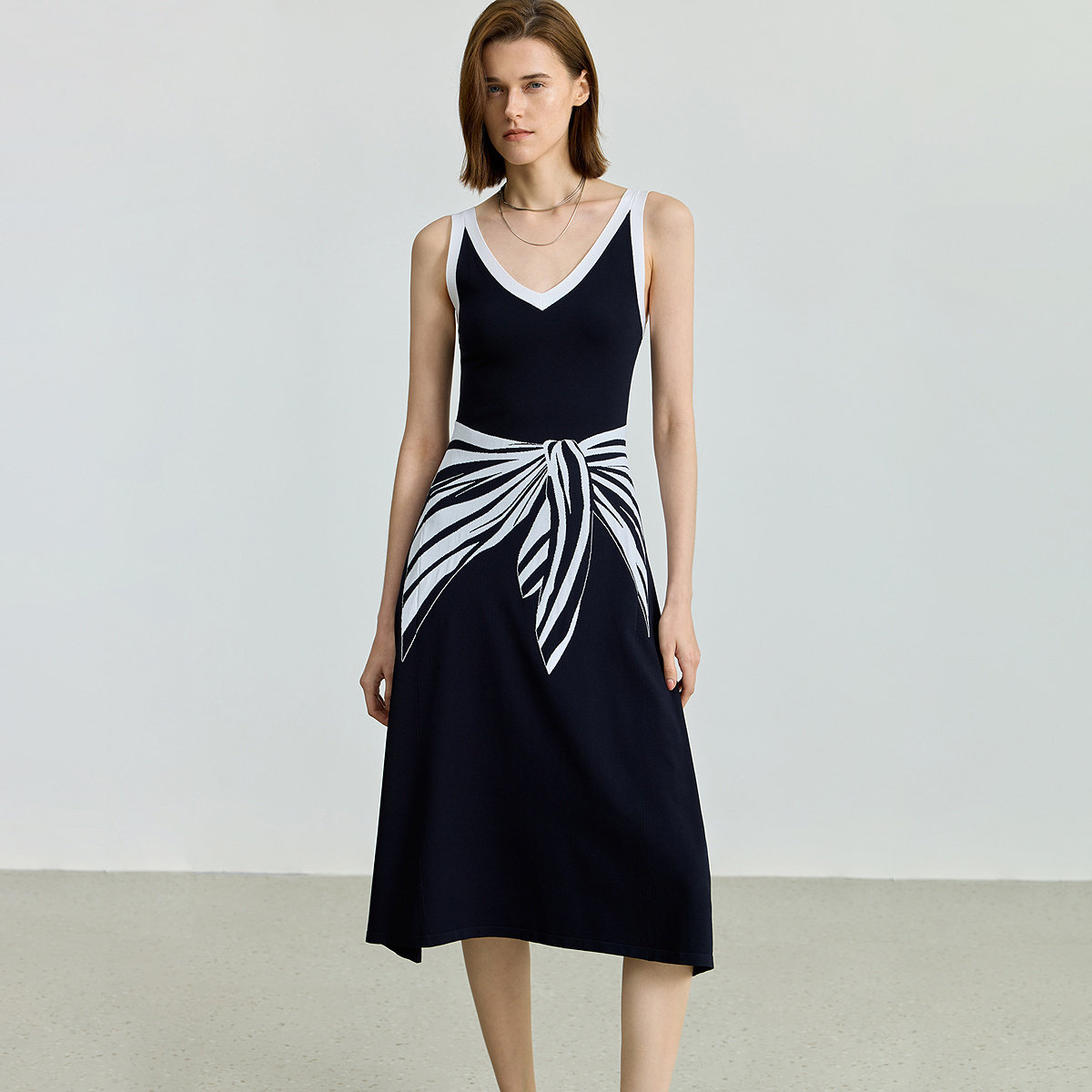 【商场同款】LILY2025新款女装设计感V领收腰针织裙吊带连衣裙