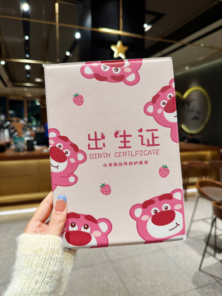 草莓熊出生证明保护套新生婴儿儿童宝宝2024年预防接种证疫苗本套