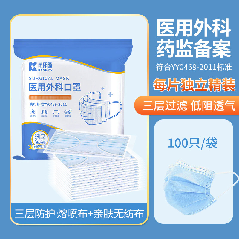100只医用外科口罩一次性医疗三层官方正品旗舰店灭菌级独立包装