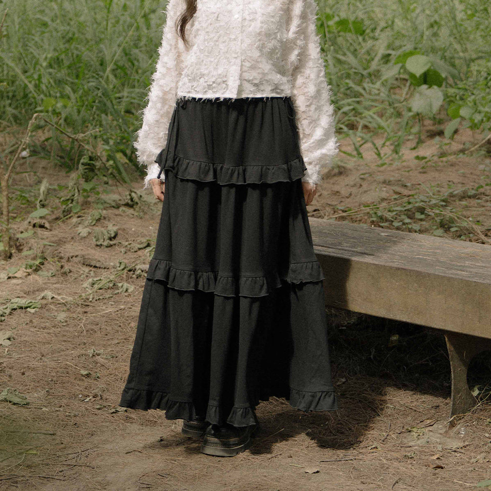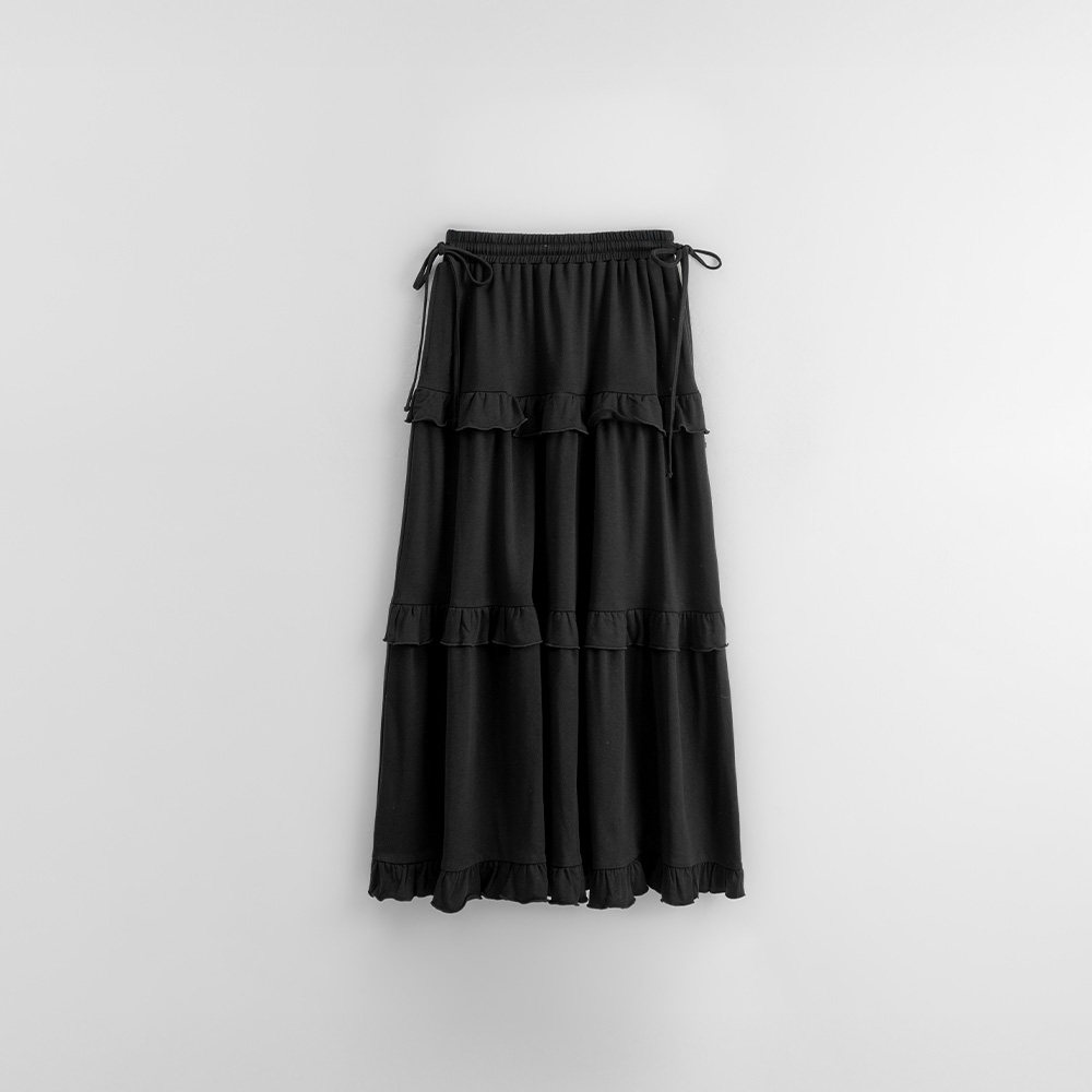 QUEENSHOP 2025秋冬新品女装纯色侧绑带荷叶蛋糕半身长裙03021677