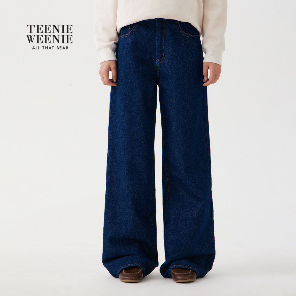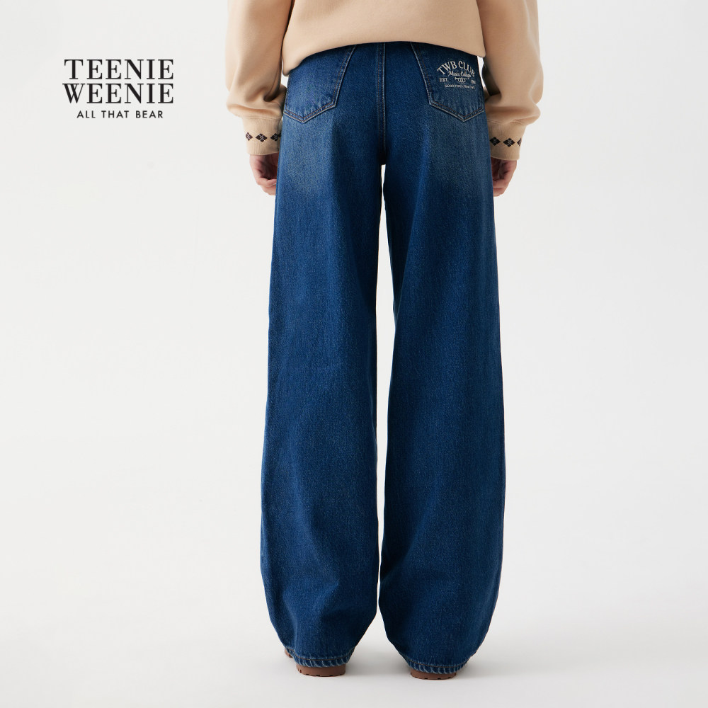 TeenieWeenie小熊女装牛仔裤2025冬季新款宽松简约舒适潮流阔腿裤