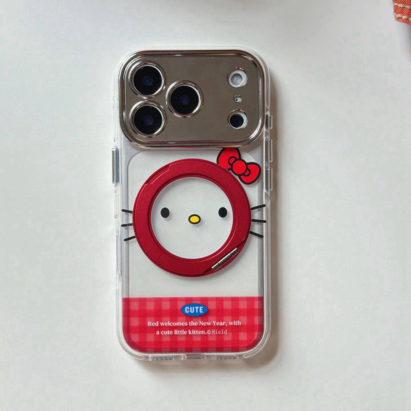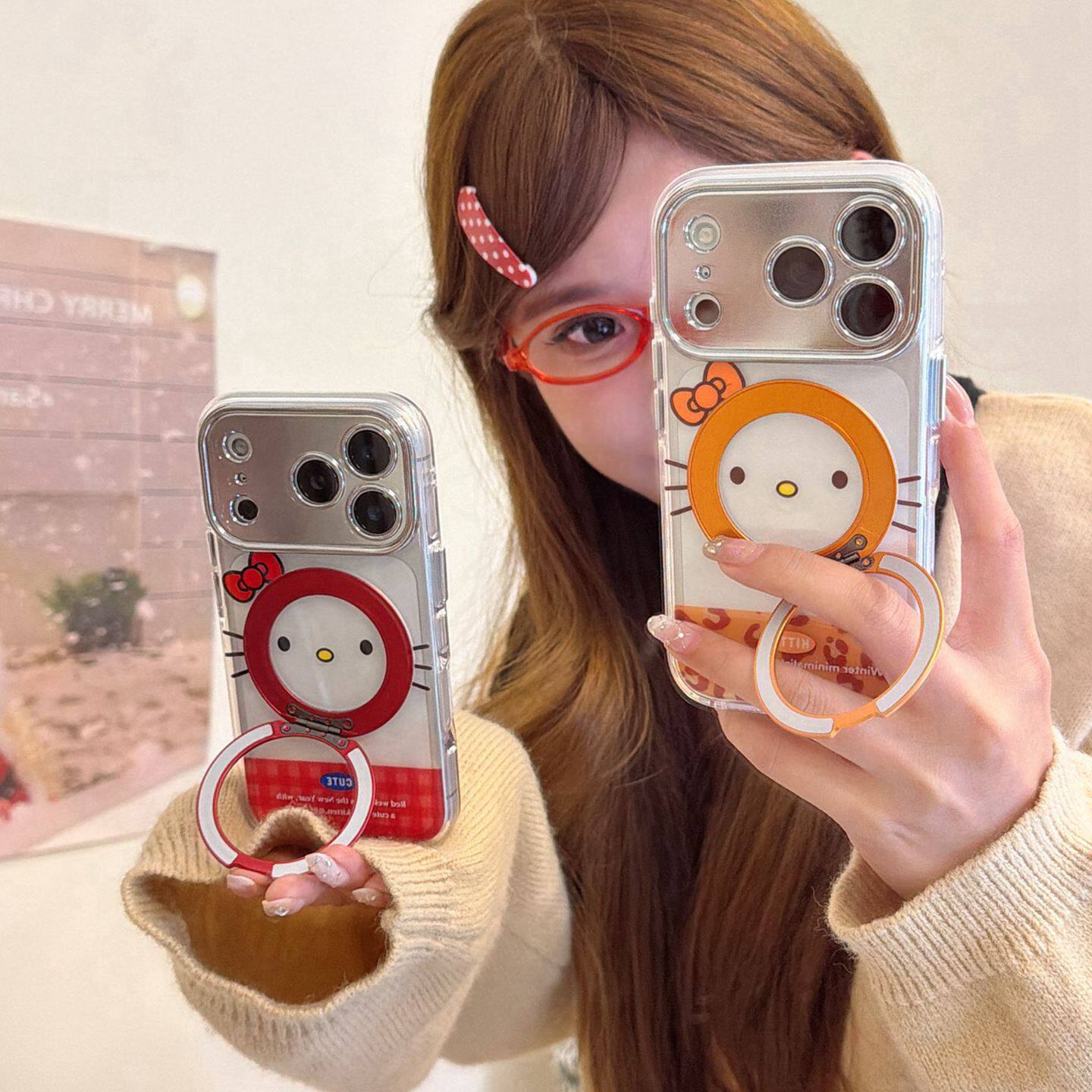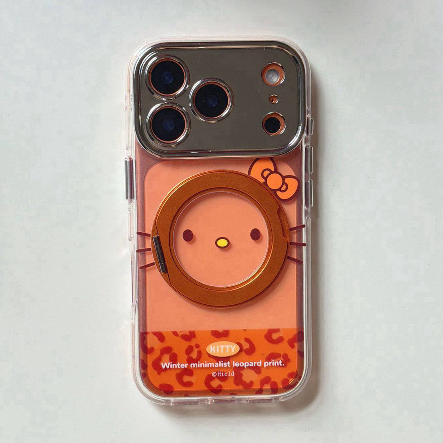 360旋转一体支点壳适用苹果17promax手机壳iphone16pro韩风卡通KT猫表情15支架壳17pm新款情侣全包保护套