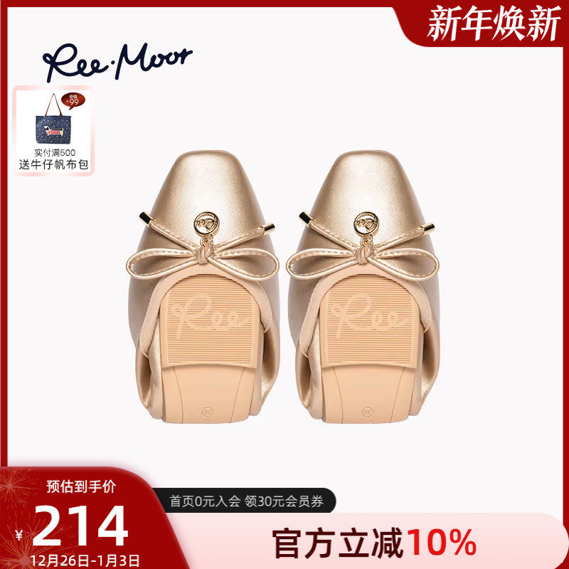 REEMOOR睿慕2025秋新款蝴蝶结平底鞋单鞋软底蛋卷鞋舒适百搭女鞋