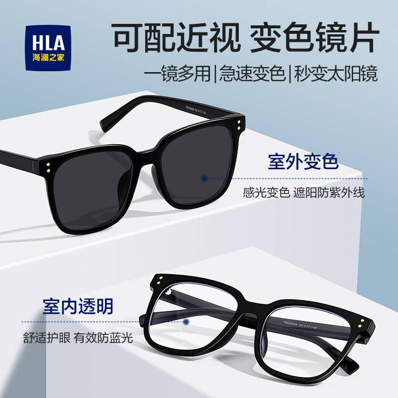 海澜之家黑框眼镜近视男度数可配防蓝光变色镜片女素颜大框镜架