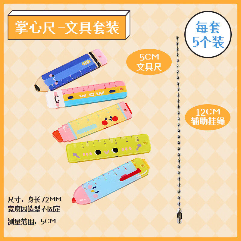 小学生便携迷你掌心尺小格尺套装高颜值彩色测量直尺套装亚克力尺子挂件可挂书包奖励小礼品手掌中尺卡通造型