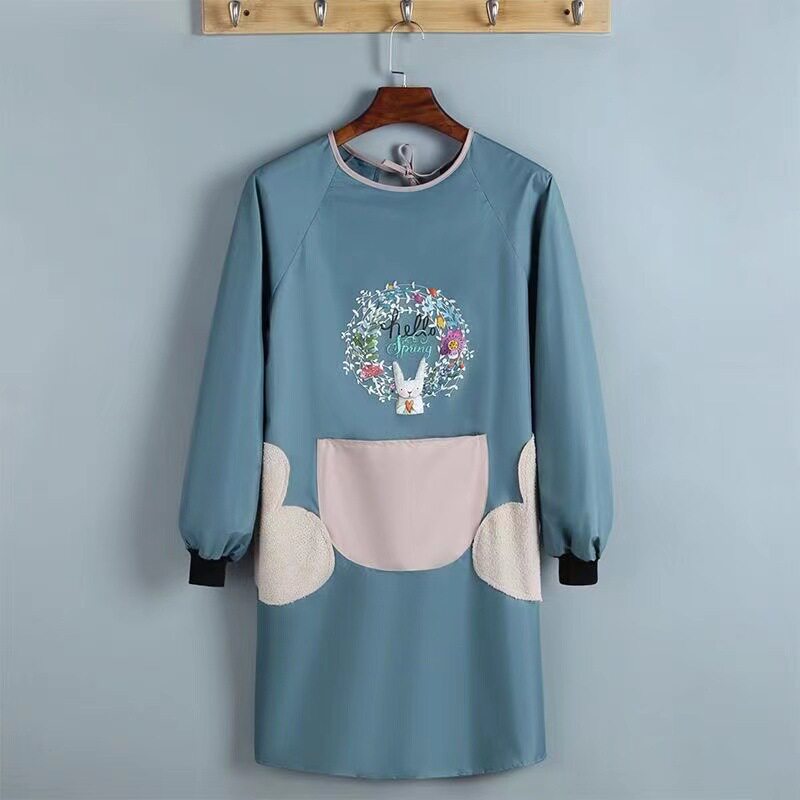 冬季加绒罩衣大人加厚长袖围裙防水韩版女时尚外套家用工作服定制