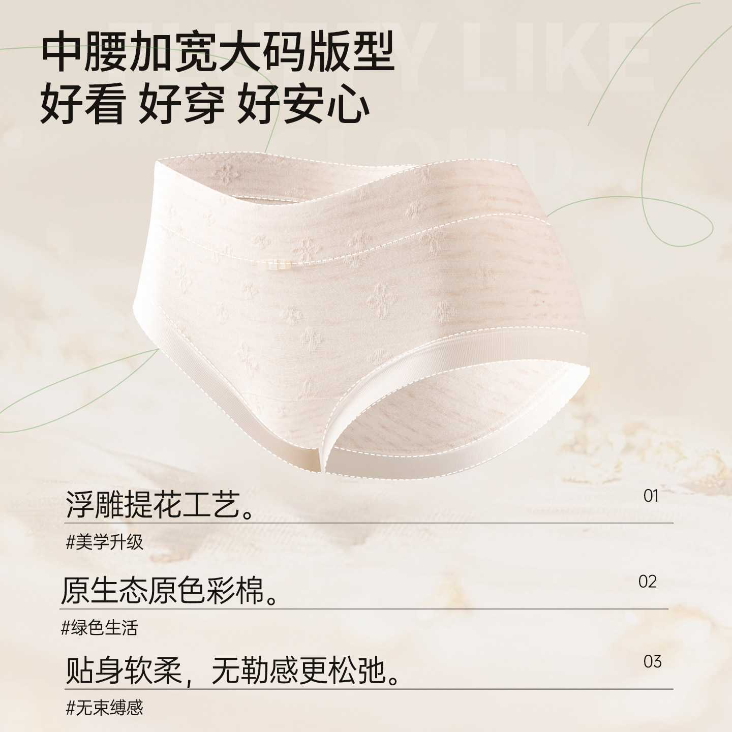 草本初色妇炎洁牌内裤女2025新中高腰加长纯棉底裆无痕抗菌三角裤
