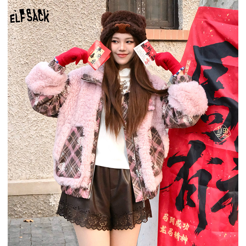 妖精的口袋毛绒拼接小香风短款外套女2025年冬新款千金感保暖外套