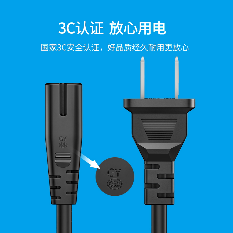 八8字电源线2芯两孔带插头显示器音响电视打印机投影仪充电线加长