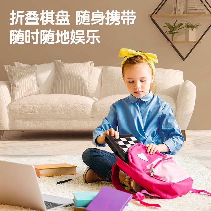 得力国际象棋磁性便携折叠棋盘儿童学生入门初学者成人磁石棋子棋类运动专用可折叠耐磨