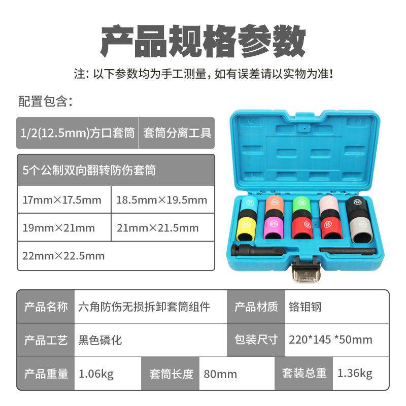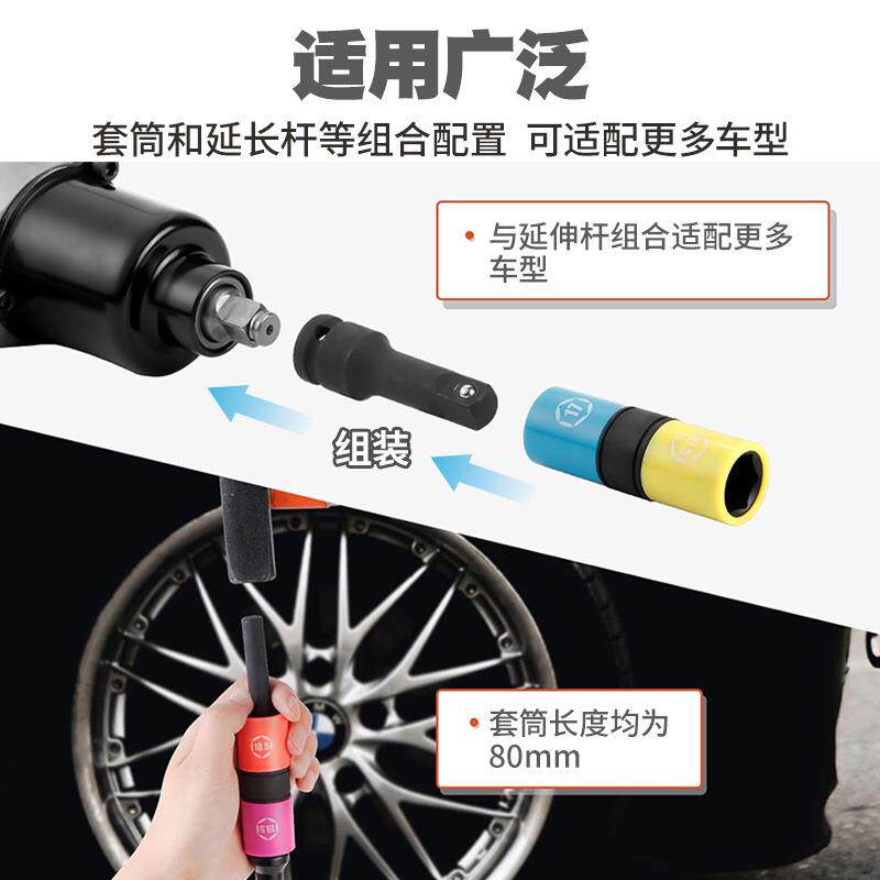1/2气动加长轮胎螺丝风炮套筒保护轮毂防伤刮花套头风动套筒工具