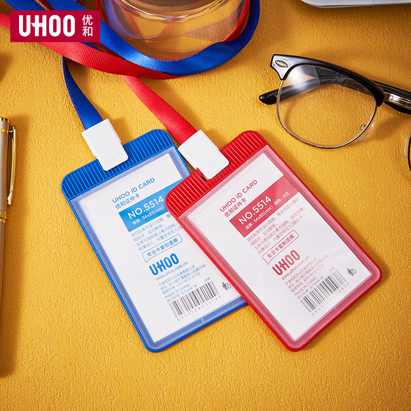 UHOO优和超薄工作证卡套单面透明工作牌工牌胸牌证件套学生校园卡套公交卡饭卡套吊牌学生胸卡挂绳校牌保护套