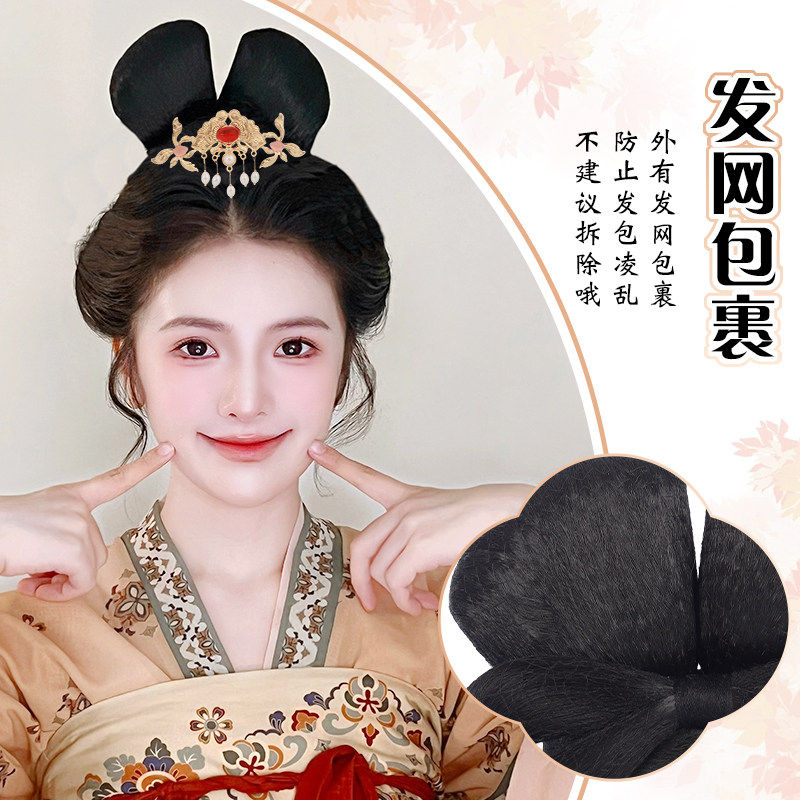 古风汉服假发髻盘发一体式发包古装明制唐风懒人造型垫发全套头饰