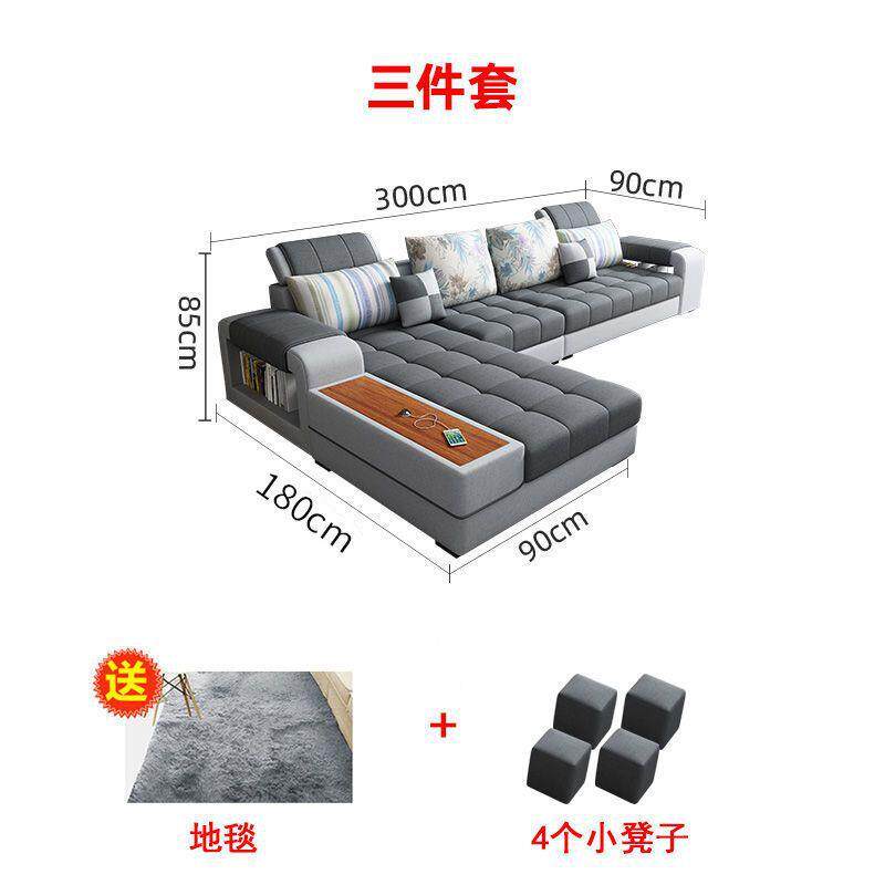 现代简约客厅科技布乳胶转角沙发布艺大小户型可拆洗组合整装家具
