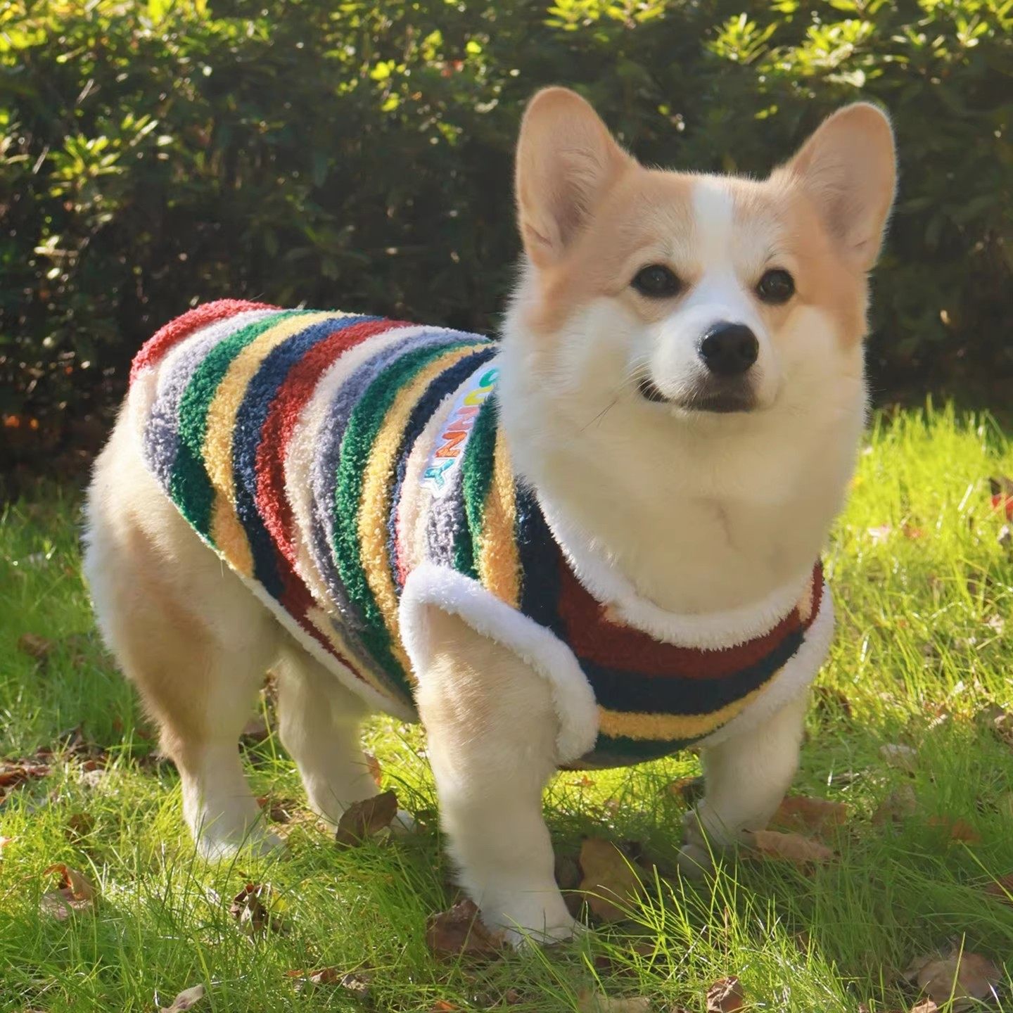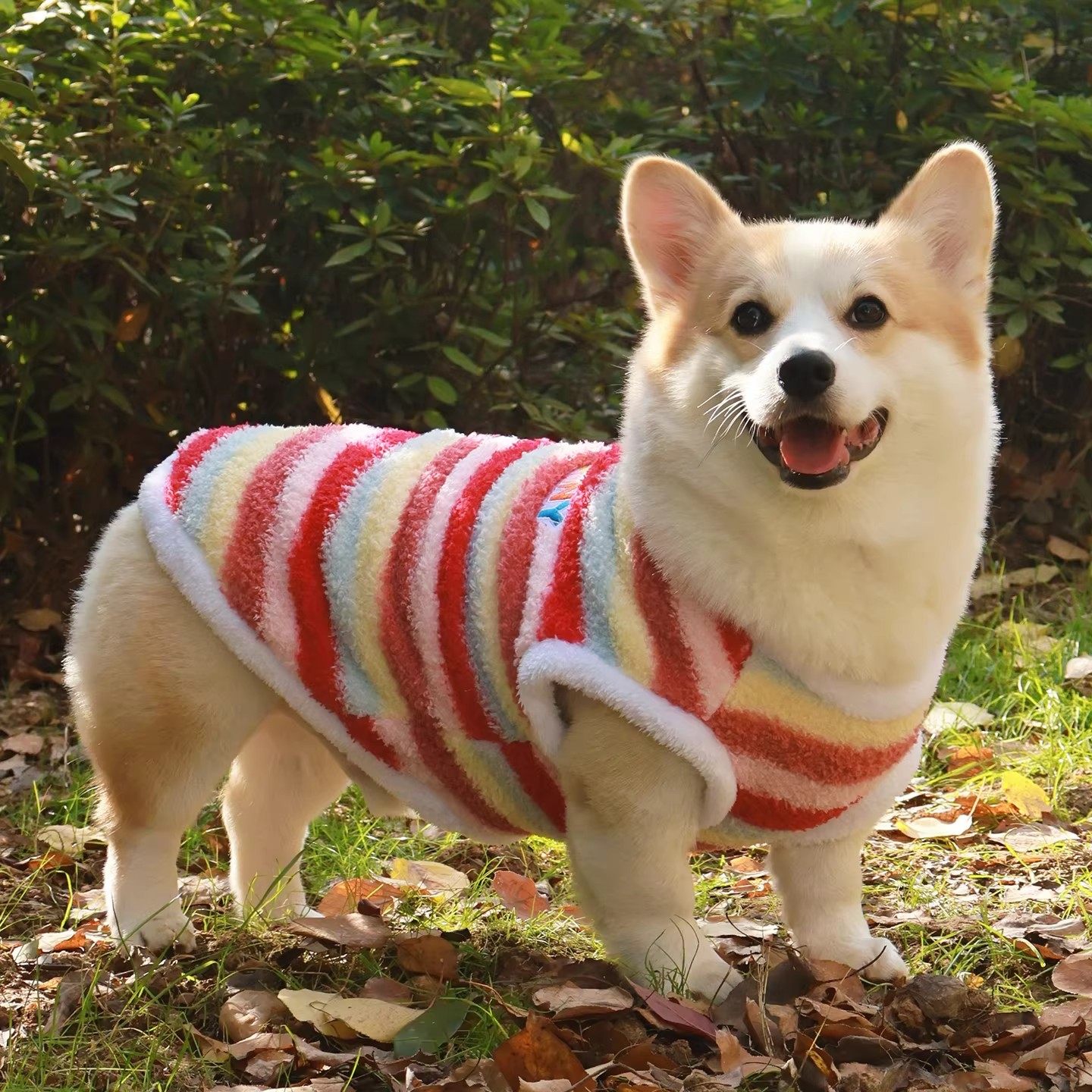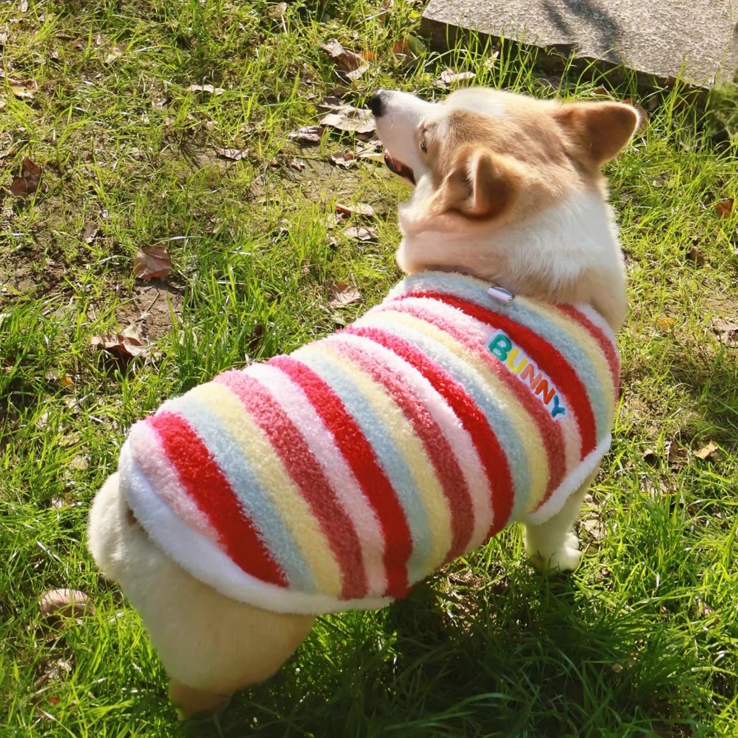 狗狗柯基衣服比熊泰迪加绒保暖防寒两脚衣背心宠物马甲条纹摇粒绒