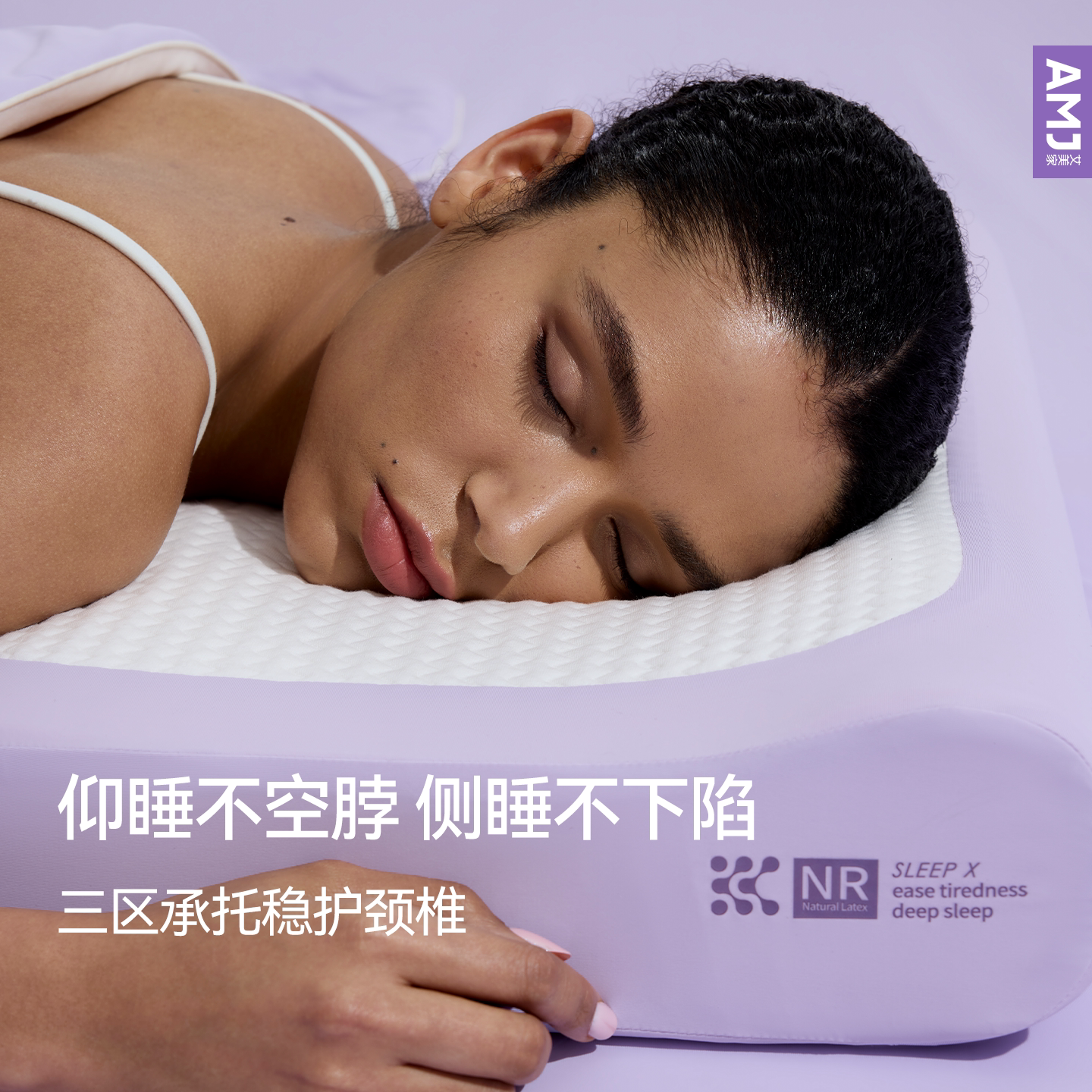 AMJ双感乳胶枕头艾美家透气天然乳胶枕芯单人枕护颈枕好睡枕头新