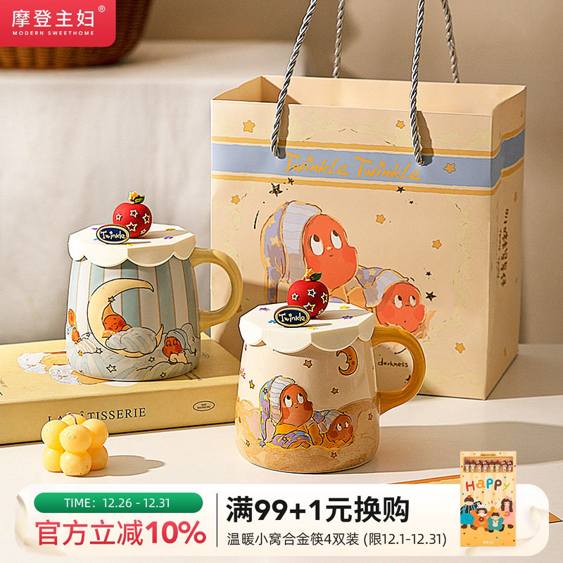 摩登主妇星星人浮雕马克杯带盖带勺生日礼物情侣水杯陶瓷咖啡杯子