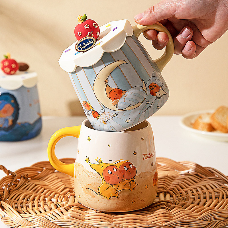 趣皿可爱陶瓷杯卡通马克杯家用办公室大容量咖啡杯情侣水杯牛奶杯
