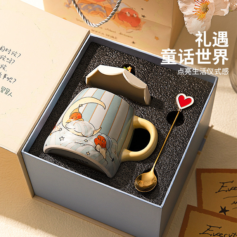 ELYSO我们都是星星人杯子马克杯带盖情侣水杯女生日礼物礼盒陶瓷