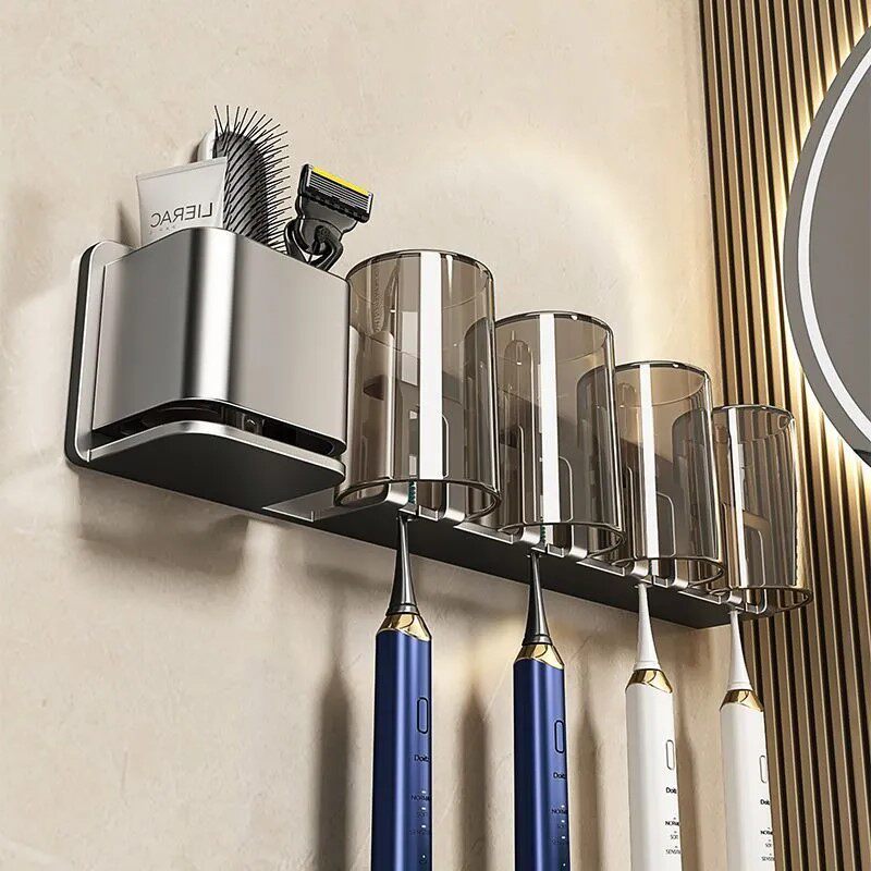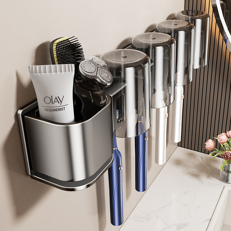 卫生间牙刷置物架电动吹风机支架家庭洗漱台壁挂式漱口杯牙具架子