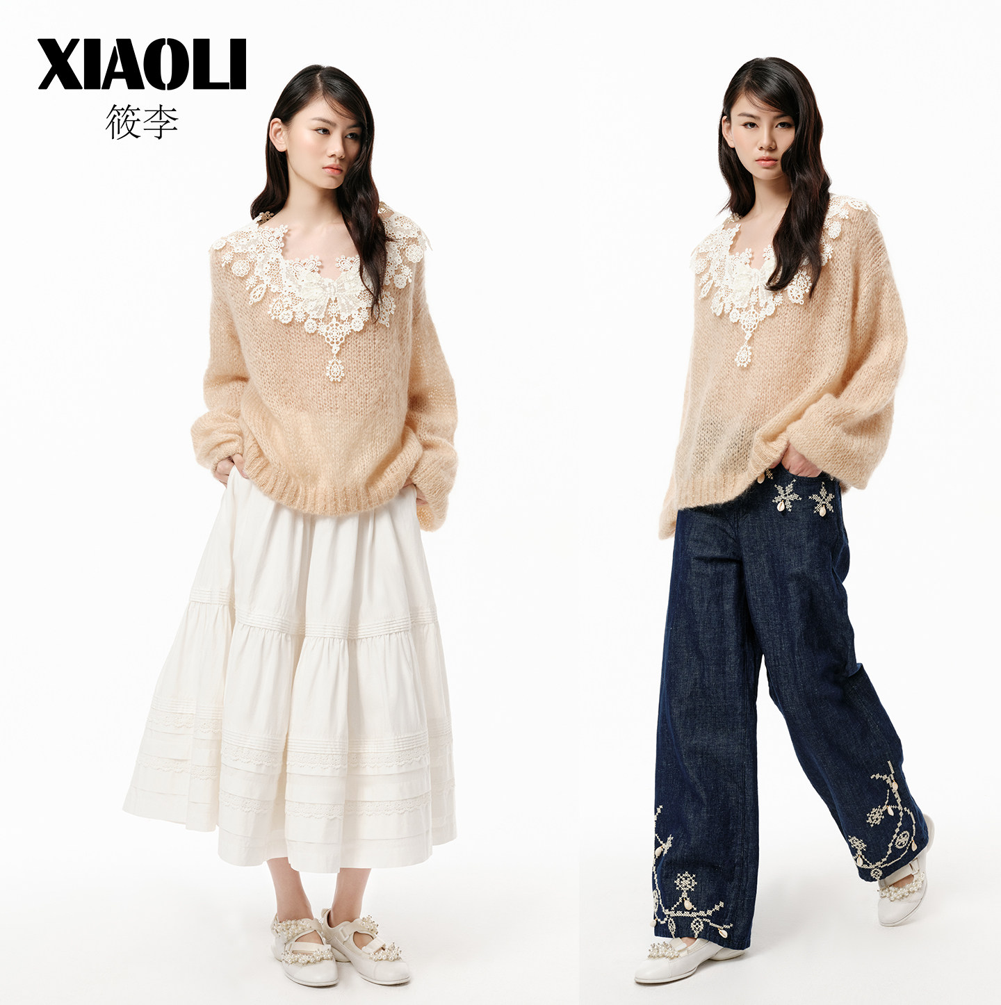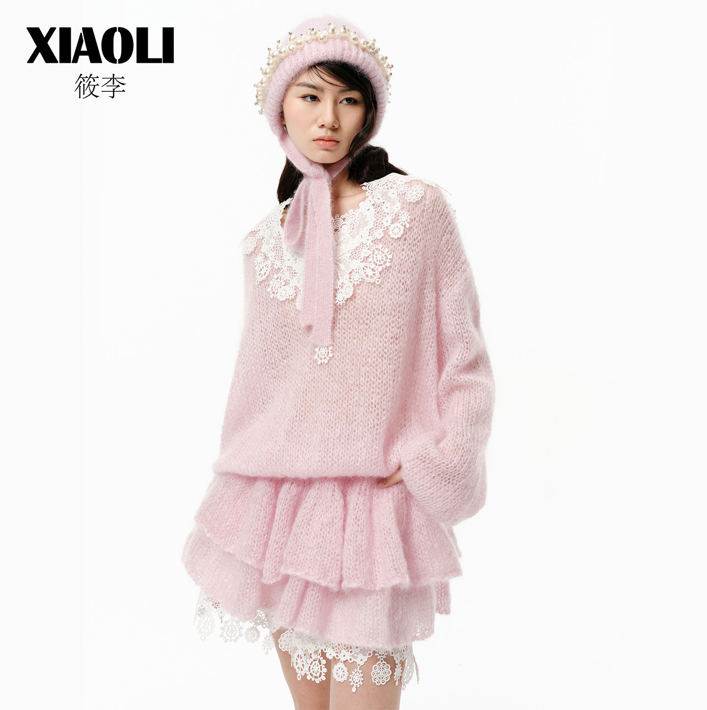 【明星同款】XIAOLI筱李灯上华尔兹原创设计蕾丝针织毛衣25秋新品