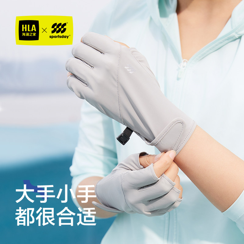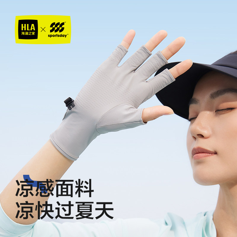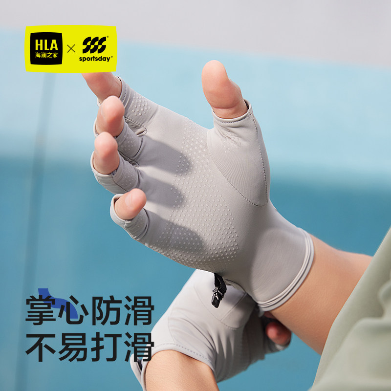 海澜之家防晒手套男士春夏季透气钓鱼防紫外线薄款骑行半指手套女