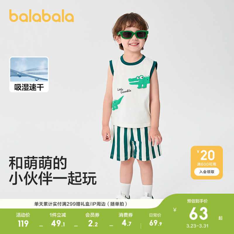 巴拉巴拉童装男童短袖套装宝宝速干T恤儿童两件套2026休闲夏装酷