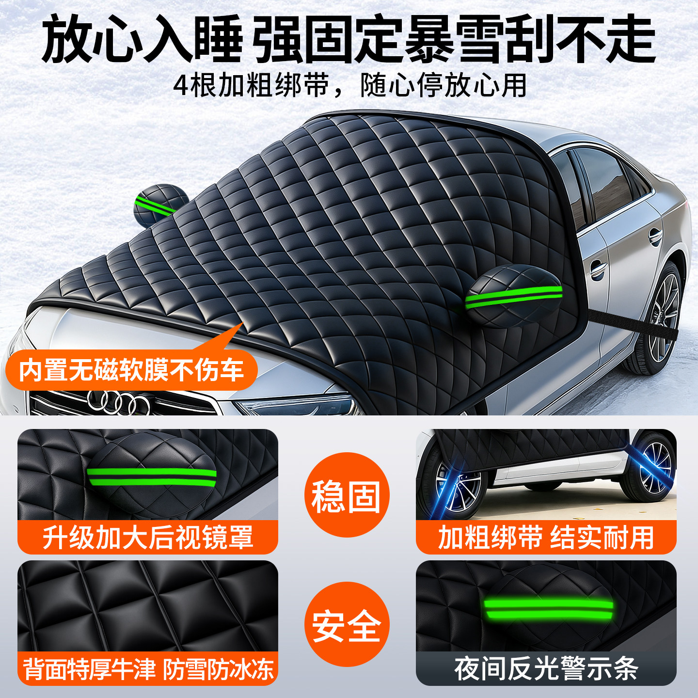 汽车遮雪挡前挡玻璃罩遮光布防霜防冻车衣半罩磁吸遮阳加厚防晒罩