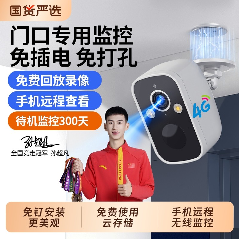 摄像头监控器家用手机远程免插电无线室外充电无需wifi门口店铺
