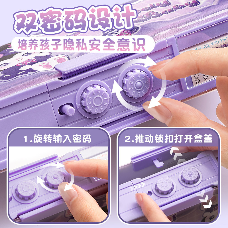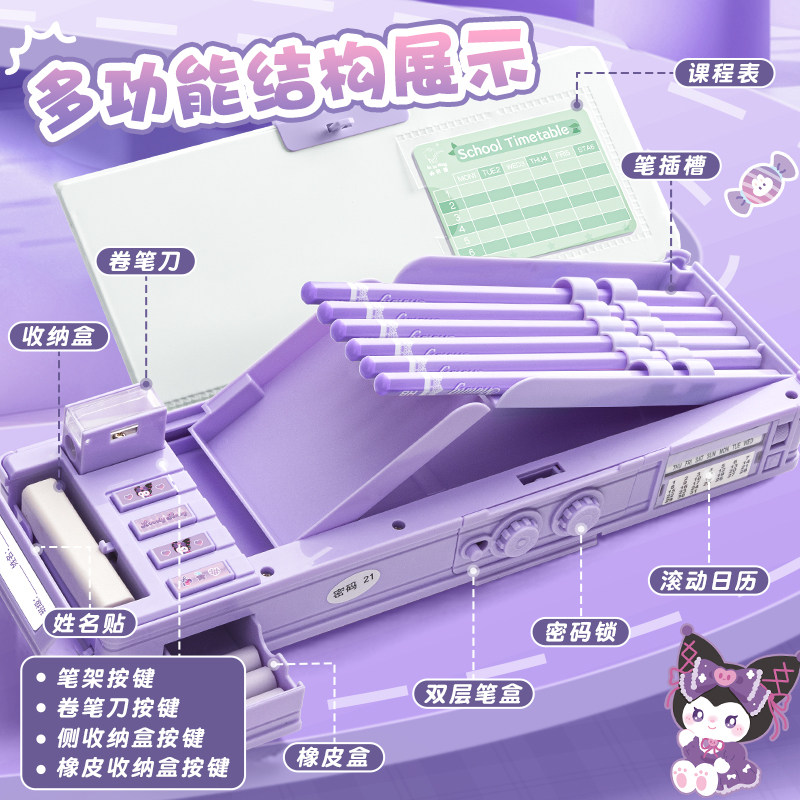 密码锁多功能文具盒女孩款笔盒黑科技网红2025新款女生铅笔盒双层高颜值儿童幼儿园库洛米紫小学生一年级男孩